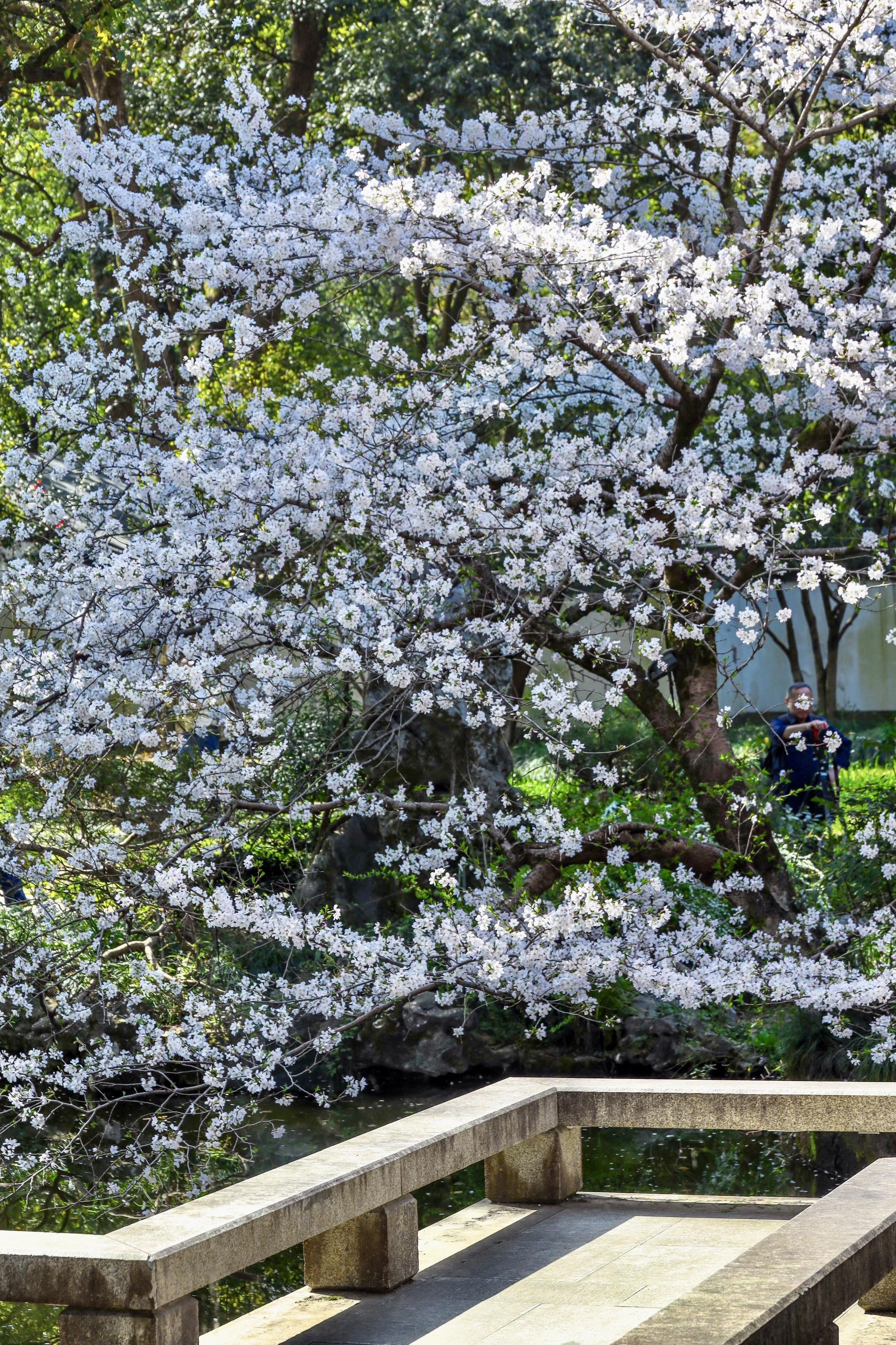中式园林风格的庭院建筑,你踏入其中,会宛如隔世之感~白墙青瓦,亭台楼阁,一步一景…这地方妙在哪呢?人家是季度限定!园子不大,但种满了樱花!爆美!如果选对时间,还能包场拍樱花!