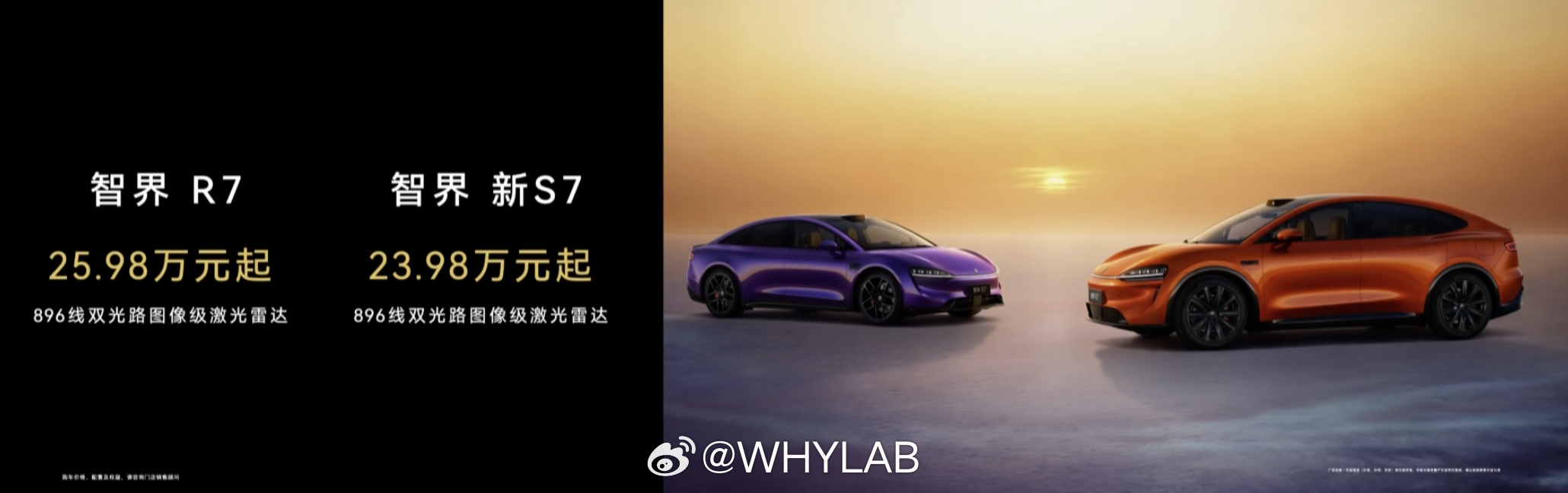 享界 S9、享界 S9T 售价 31.98 万起;智界 R7 售价 25.98 万起;智界新 S7 售价 23.98 万起;问界 M7 售价 30.98 万起;问界 M8 售价 36.98 万起。
