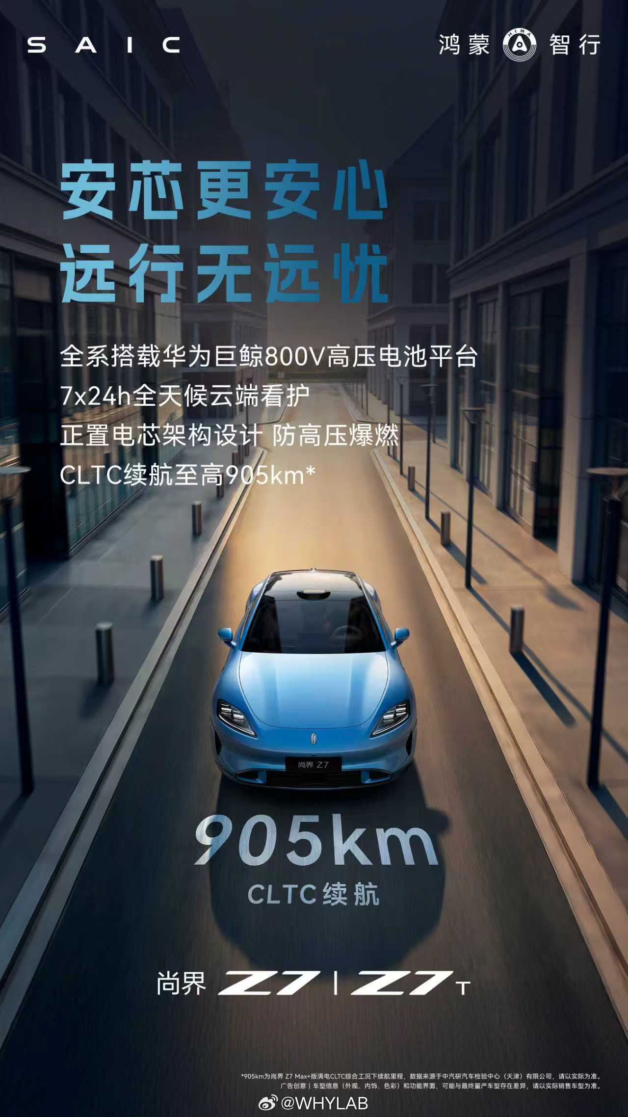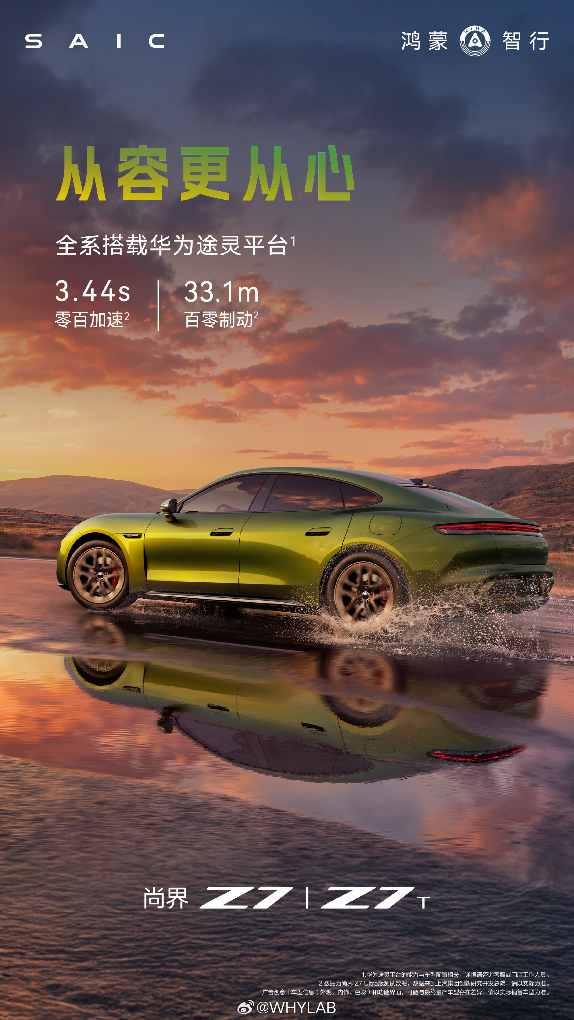 鸿蒙智行轿跑尚界 Z7、Z7T 来了,全系搭载华为巨鲸 800V 高压电池平台,全系标配 896 线双光路图像级激光雷达,零百加速 3.44s,百零制动 33.1m。