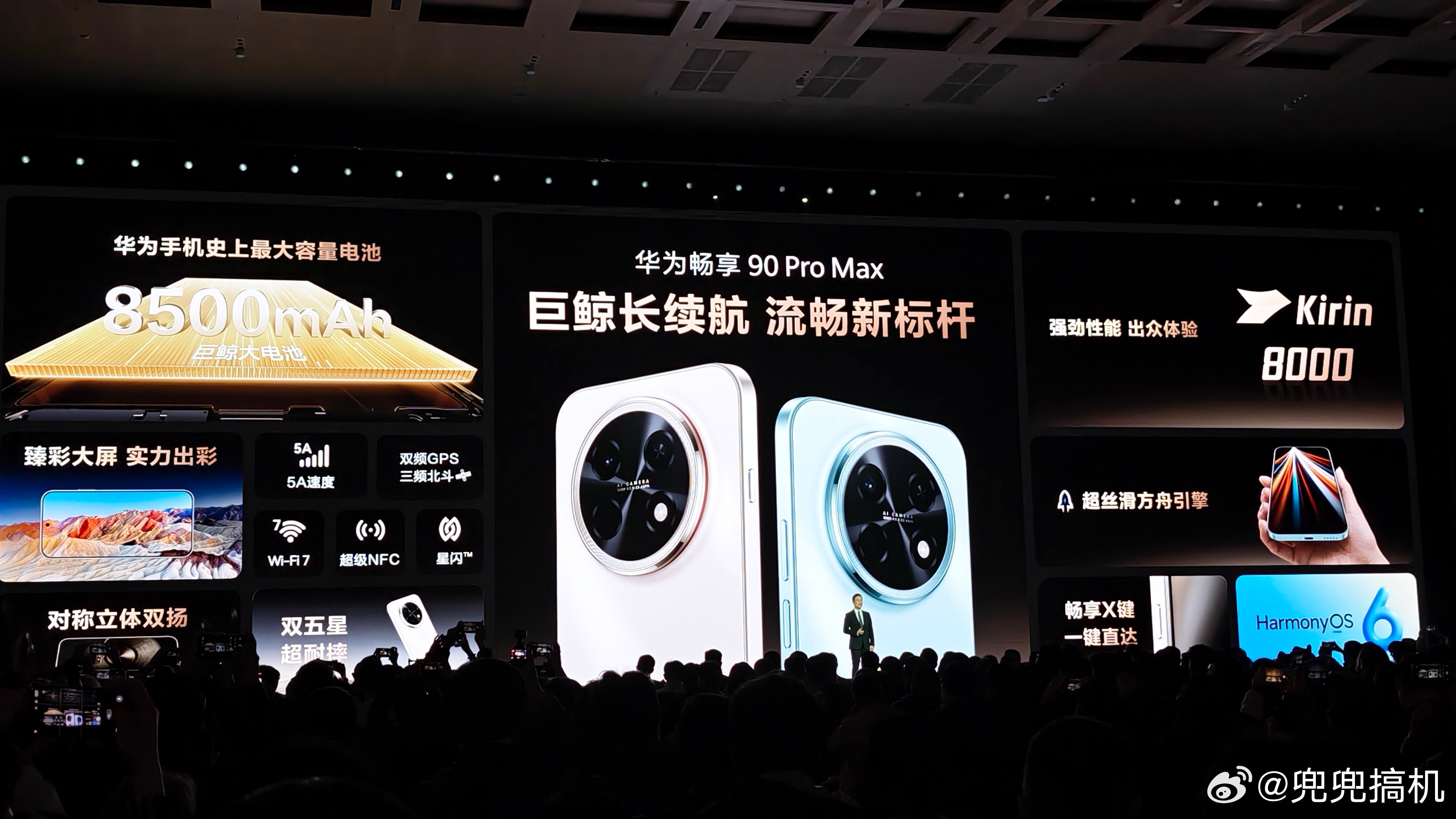 华为畅享 90 Pro Max 采用 8500mAh 巨鲸电池,搭载麒麟 8000 处理器,1699元起。畅享 90,1299元起售,畅享 90 Plus1499元起售。
