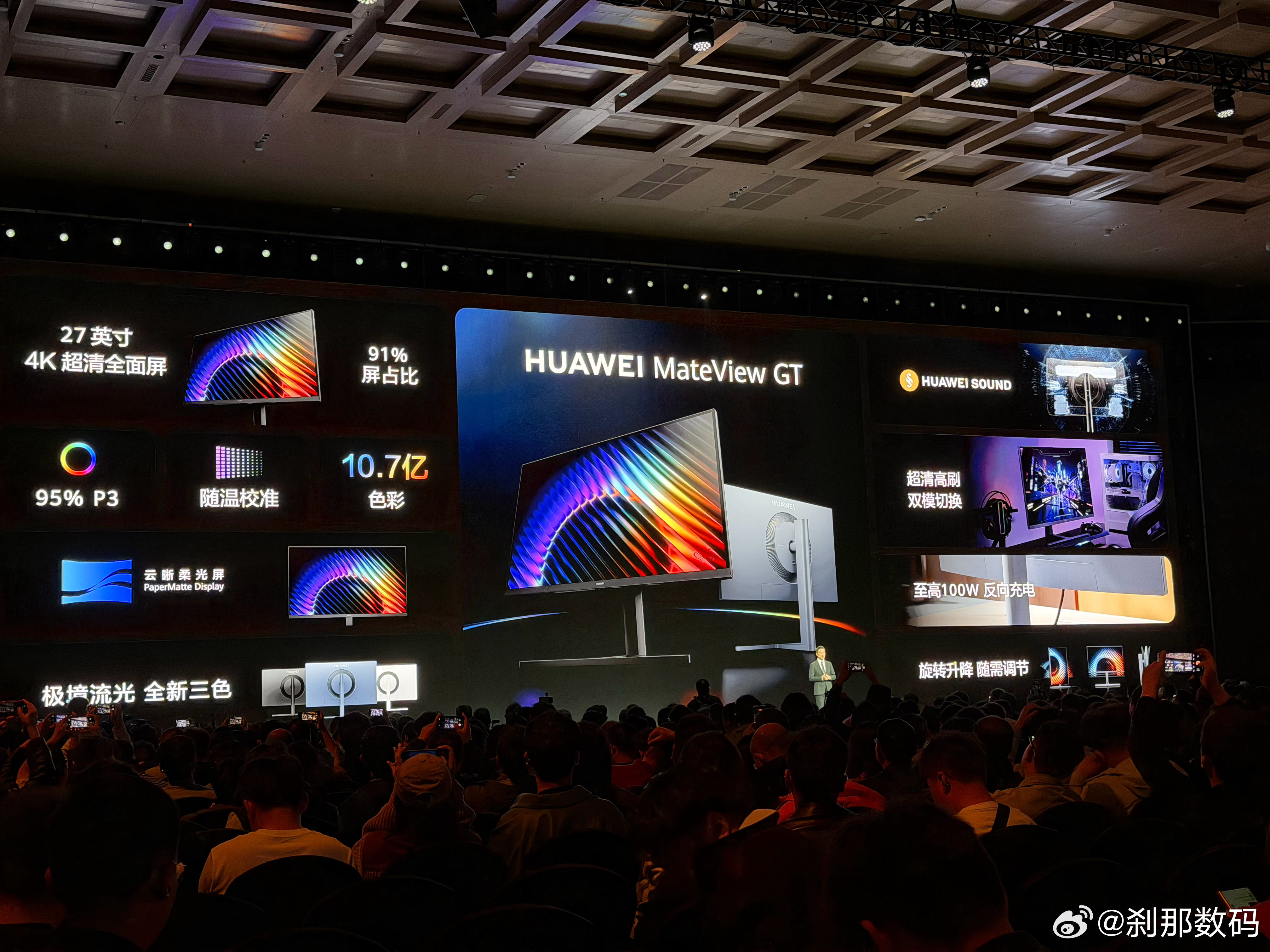 全新华为MateView GT 正式发布刹那新品报道,1099起售。我看了一下,参数给得确实很足。屏幕素质:27英寸的 4K 云晰柔光屏,防眩光、防反光,不爱沾指纹。屏占比高达91%,支持 10.7亿色 和 95% P3广色域。高刷双模切换:可以选择 4K画质+160Hz 兼顾清晰和流畅;玩高帧率游戏时,可以直接切成 1K画质+320Hz 的极致高刷。自带音响:内置了华为悦彰(HUAWEI Sound)音效,4.1声道加上5个扬声器单元,基本上连买桌面音箱的钱都省了。最高支持 100W反向充电;底座支架支持自由升降和旋转。另外针对游戏,还加入了暗阶增强、动态准星和防撕裂(Adaptive-Sync)这些辅助功能。