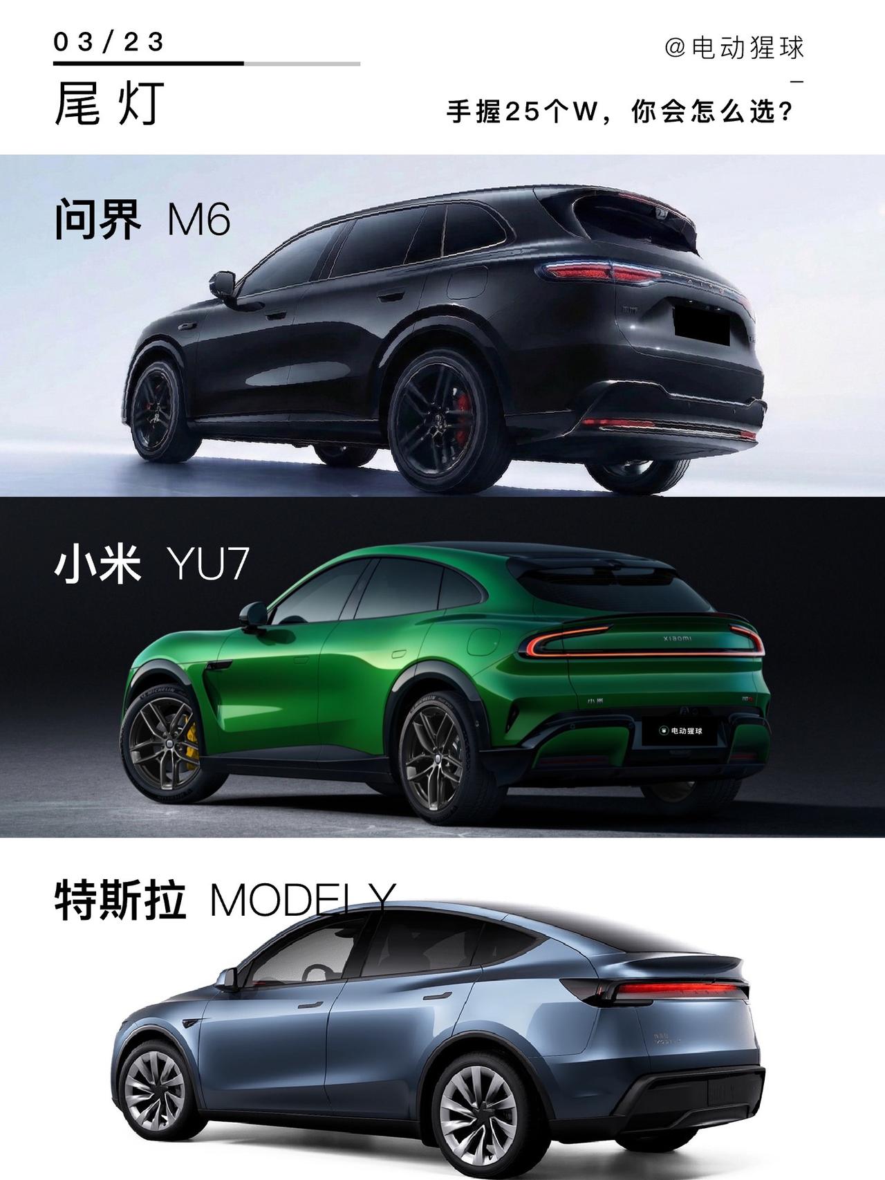 手握25个W,你会怎么选?问界M6发布,预售26.98万起,增程纯电可选,好家伙,全系都是896线激光雷达。对上销量神车ModelY和颜值神车小米YU7,问界M6的辅助驾驶和空间或将成为差异化发力点,手握25个W,你会怎么选? 问界M6 小米YU7