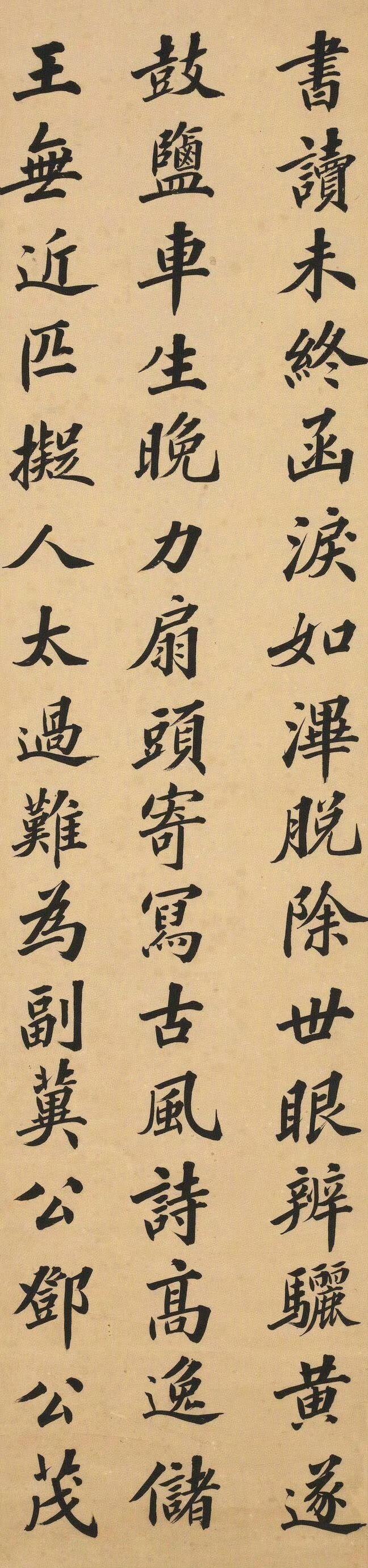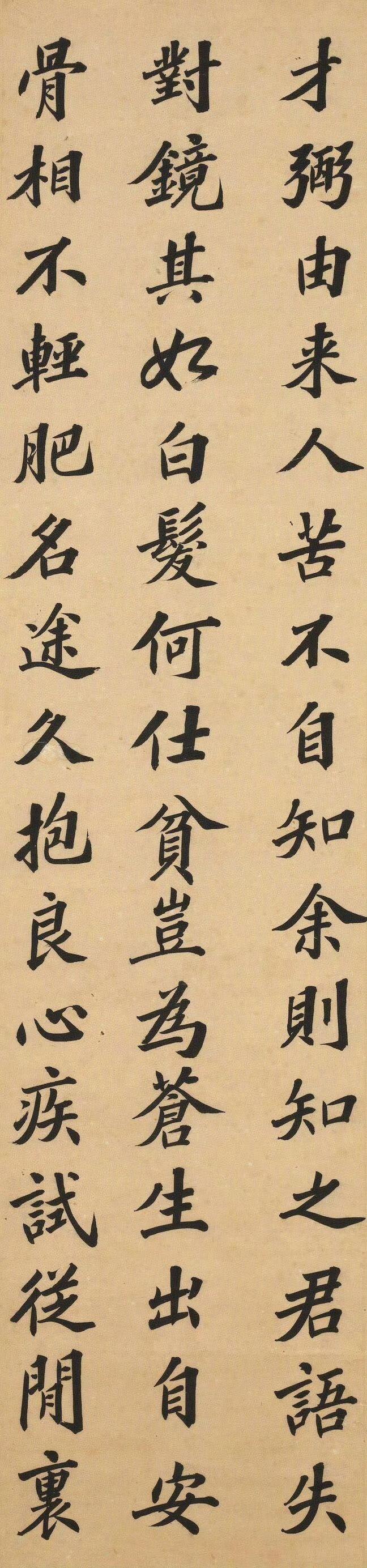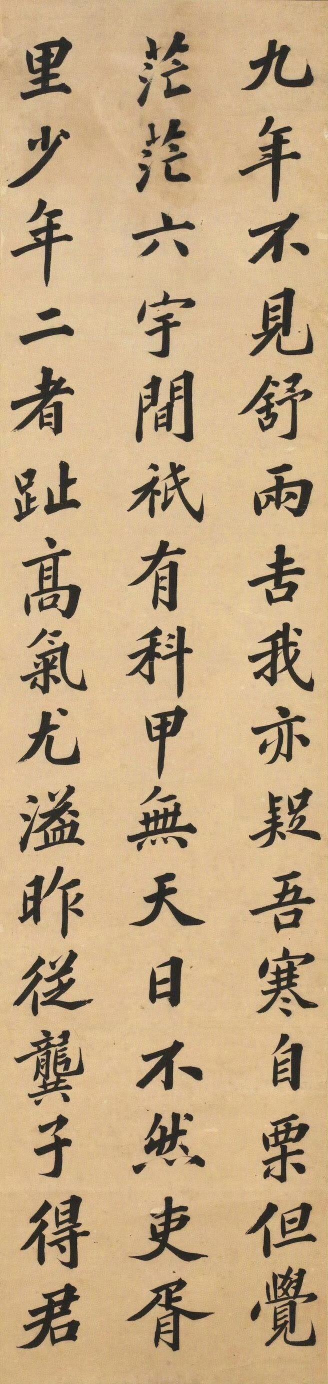 林则徐《录沈大悟诗四屏》:笔锋里的家国气 林则徐的这组书法四屏,录的是沈大悟的诗,却写满了自己的风骨。 看那字,笔力如扛鼎——楷书打底,却掺着行书的灵动,横画如剑出鞘,竖笔似松立崖,起笔斩钉截铁,收笔沉稳有力。没有半分柔媚,倒有股“苟利国家生死以”的刚劲,墨色浓淡间,像能看见他伏案挥毫时的凝重。 四屏章法疏朗却气脉贯通,字字如列阵的将士,规整中藏着激昂。录诗或许是寄情,可笔锋里藏不住的,是这位禁烟英雄的襟怀:写“家国”处笔锋沉郁,书“山河”时墨色开阔,把诗句的意与个人的志,熔成了纸上的惊雷。 世人知他虎门销烟的壮举,却少识他笔墨里的肝胆。这四屏书法,没有刻意炫技,却字字见精神——是文人的风骨,更是志士的担当。如今展看,仍能从那遒劲的笔画里,摸到一个民族的脊梁。 林则徐书法 沈大悟诗 家国情怀 清代书法 记录我的2026