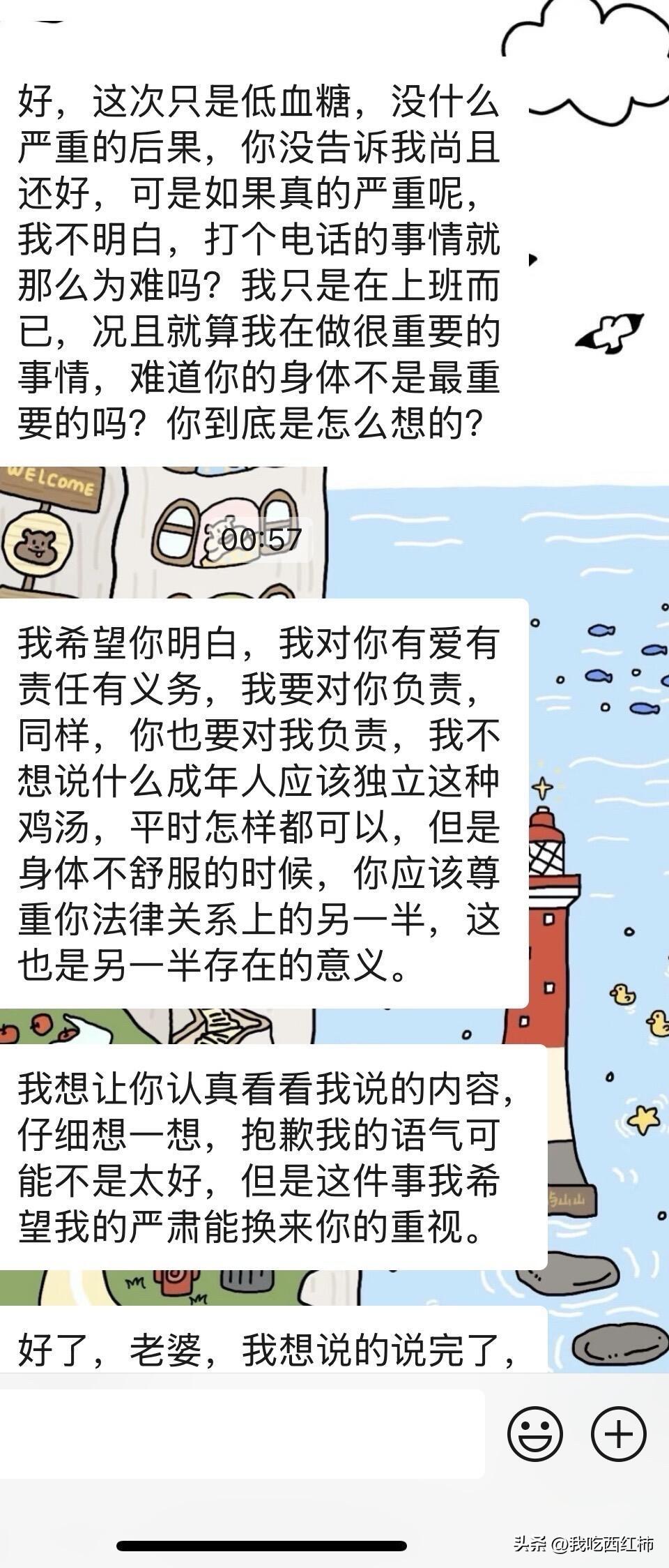 已婚没孩子的夫妻每天都在聊什么 每天都在给大家分享我们之间的快乐日常 其实我们也有磕磕绊绊 也有争执 也有发脾气的时候 前几天例假加低血糖晕乎乎的没站稳 倒下去了 好在他回来了 送我去了医院 出院后他虽然还是在无微不至的照顾我 但我能明显的感受到他的情绪 我不告诉他是因为我不认为会那么严重 我从来没晕倒过 所以想自己扛一扛 不想麻烦他 怕他担心也怕影响他工作 平时给大家分享的都是他搞笑又有梗的一面 这是不曾给大家展示过的他 其实严肃起来压迫感还是有点强的