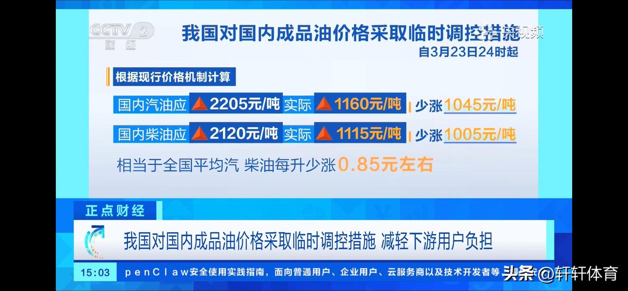 国家这次真给力,确定了本次涨价只上涨0.85元左右,相信这几天大家讨论最多的就是本轮将在23日24时开启的油价调整,按国内油价上涨机制来看,本次调整汽油预计上涨2205元每吨,柴油预计上涨每吨2120元,折算下来汽柴油预计上涨在1.7元左右每升,如果这样换算92号汽油将全面达到9元时代,95号汽油将超过10元每升,就在油价即将大幅上涨的时刻,国家发改委考虑到经济平稳以及社会民生问题,在保证现行调价机制的情况下,对国内成品油价格进行临时管控错失,原计划上涨的2205元每吨的汽油调整后上涨1160,折算上涨0.87元每升,少上涨0.85元每升,柴油原计划上涨2120元每吨,调整后上涨1115元每吨,调整后上涨0.95元每升,少上涨0.85元每升,这是成品油调价机制运行以来13年首次进行调控,这是国家在保证国内经济平稳运行的重要机制,感谢国家及时出手对成品油上涨进行抑制。