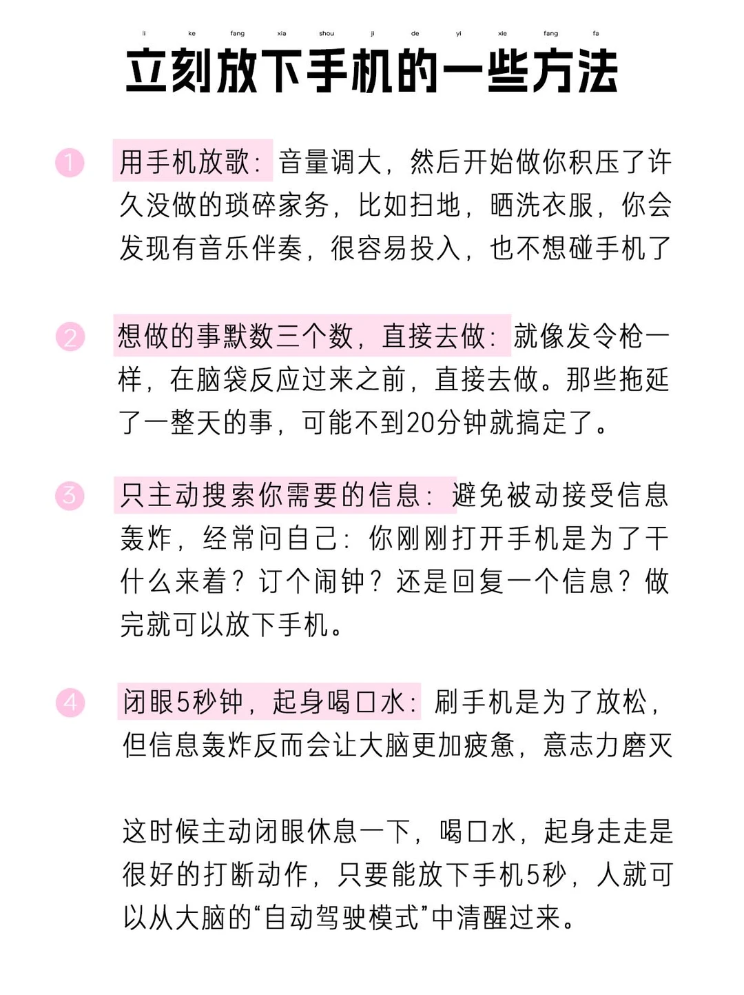 以上是马上就可以执行的方法,让你现在马上放下手机,其实还有一些长期的方法。