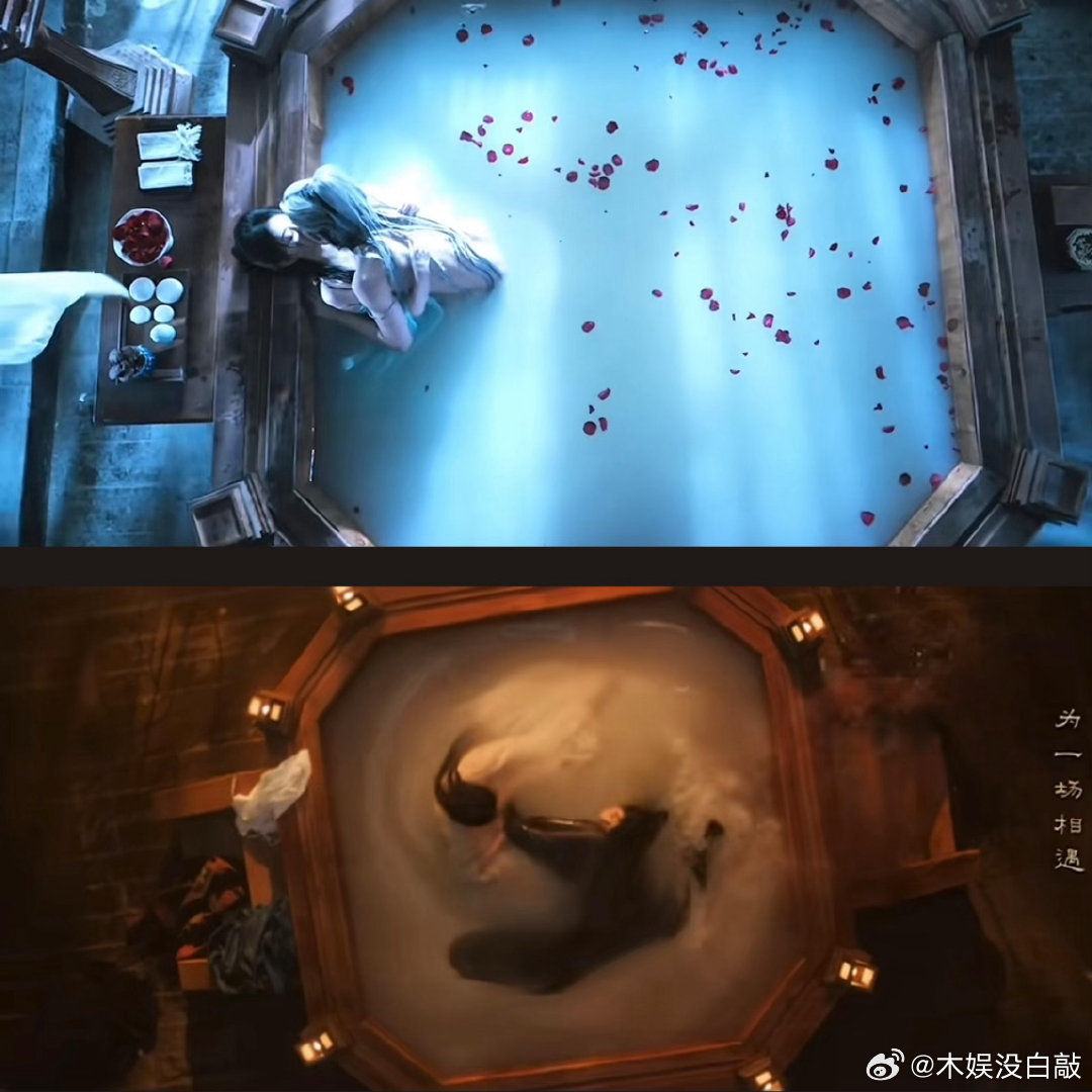 这是一个浴池吗?一个清菌锅,一个鸳鸯锅😂 下边疑似用八卦来暗示阴阳调和浴池外一堆吃瓜群众