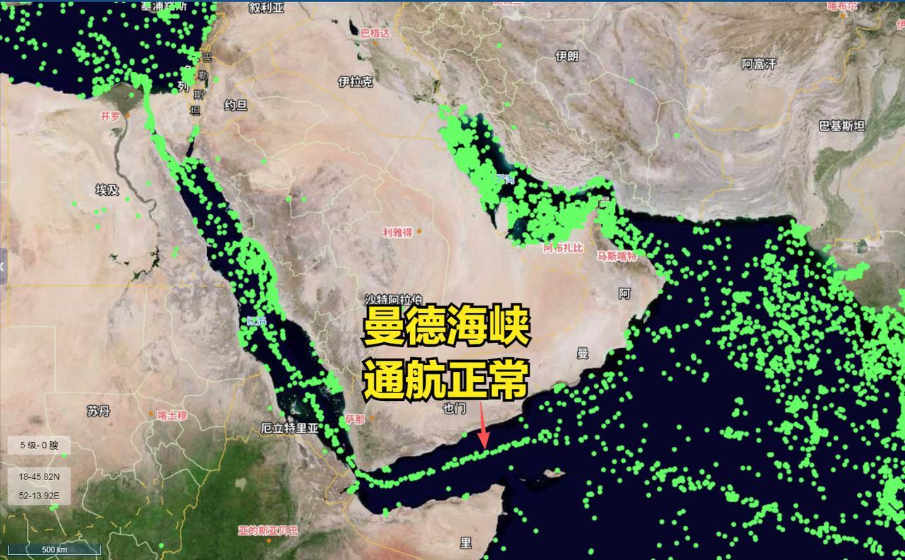 2026.3.23霍尔木滋海峡船舶动态图 从卫星动态图(图一)上看来,经过霍尔木滋海峡的船只数量几乎没有,以住通过这里的船只很多,可以看到一长直直的航线,现在呢根本就看不到航线了,由此就可以判断,霍尔木滋海峡航线基本上断了。 反观图二苏伊士运河到亚丁湾的船舶动态图,可以明显看到很多船只在航行,船舶信号组成直直的航线,说明这里的船只航行正常。