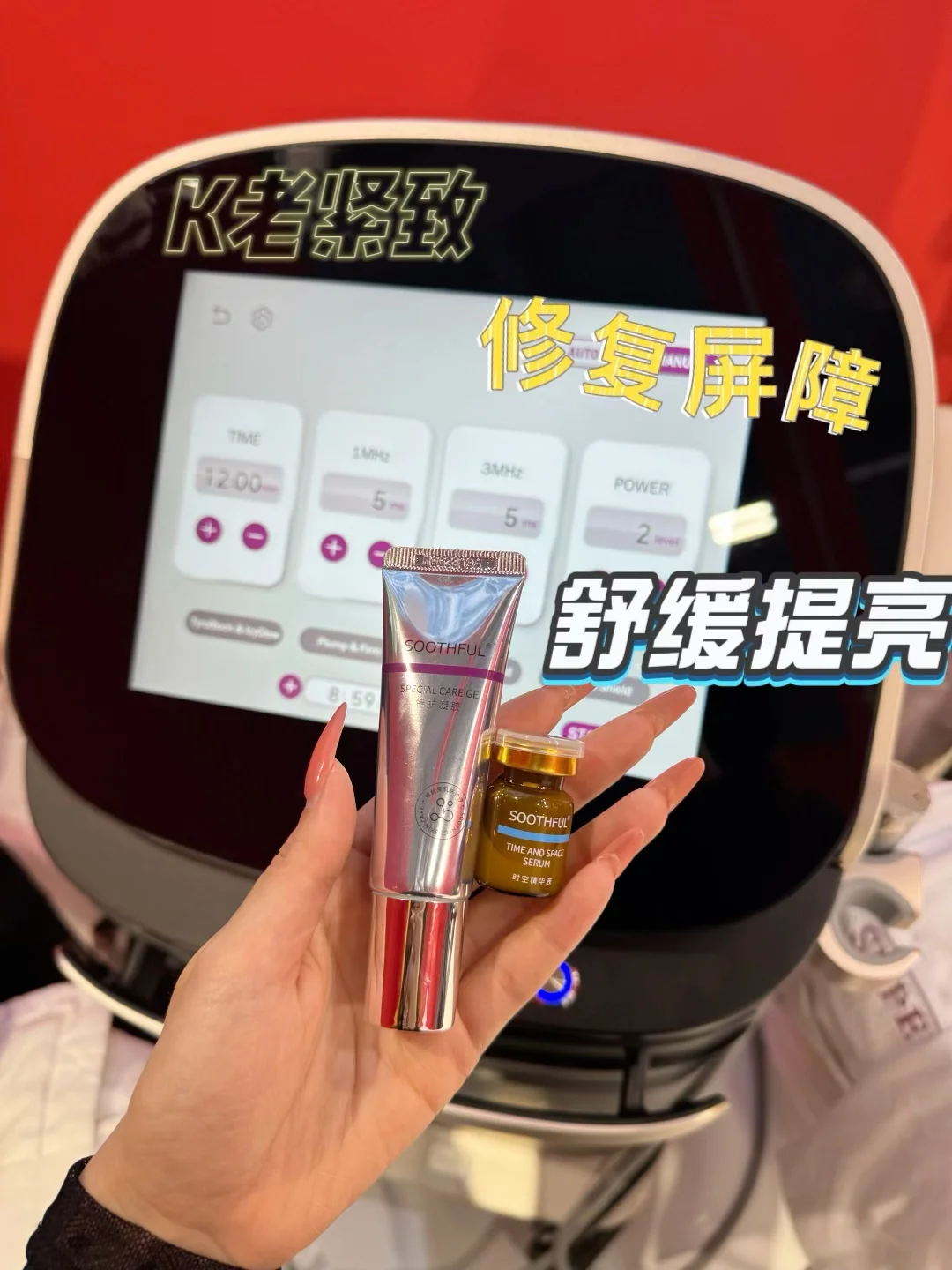 想要整体焕白,修护必须配套跟上!我当天还体验了修丝芙 ,它是采用CryoSonox™声氧冰息从根源去拦截黑黑因子的生成,鲜氧灌注褪红,低温冰息去修护加固,新手完全不用怕踩雷