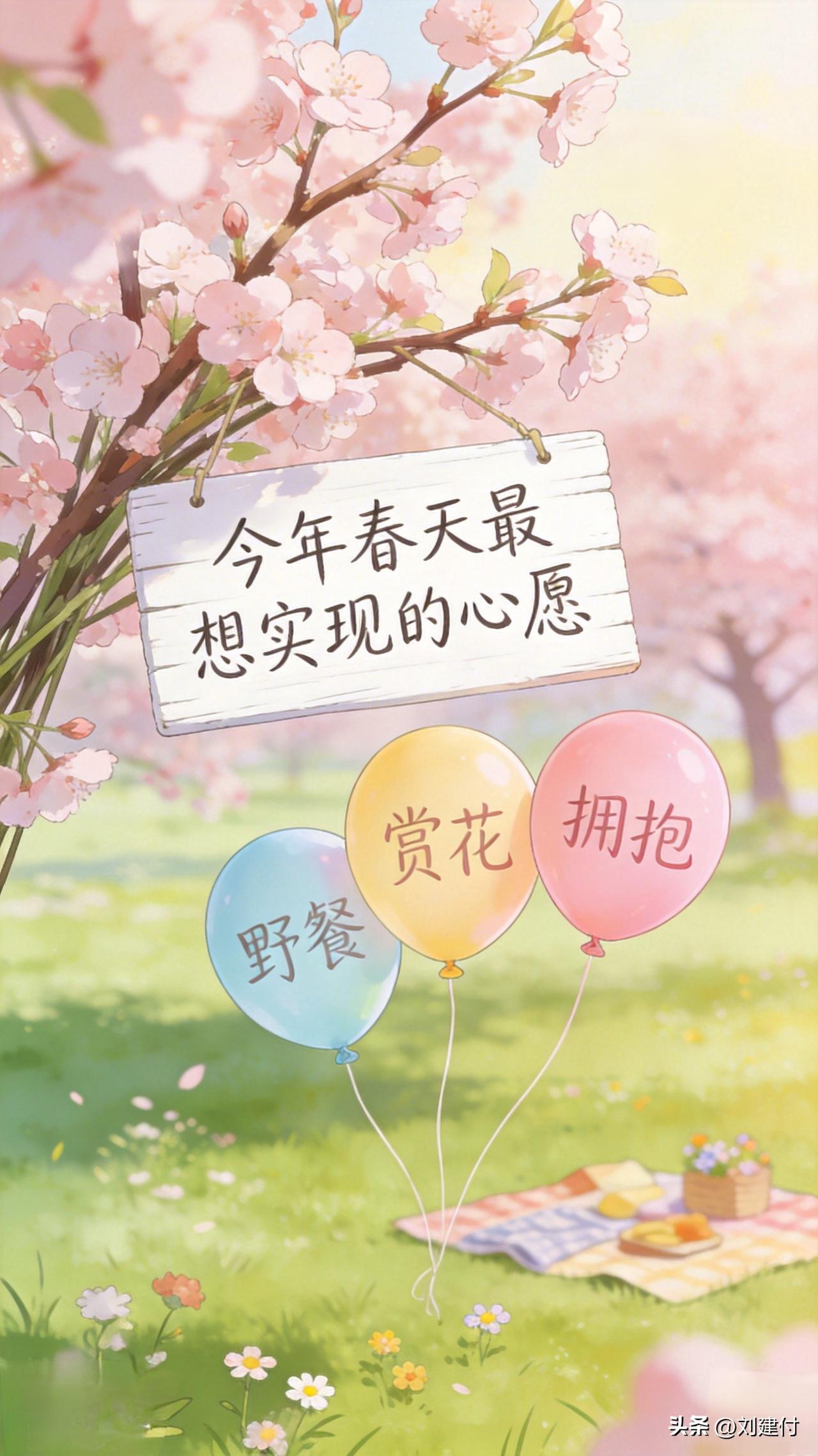 今年春天,最想实现的心愿是—— 和闺蜜去郊外野餐! 脱掉厚重的外套,换上碎花裙,在开满小雏菊的草地上铺开格子布,摆上草莓蛋糕、冰镇柠檬茶,还有她最爱的芒果沙拉。 风会吹乱头发,阳光会晒红鼻尖,但我们一定会笑到肚子痛——就像十八岁那年逃课去看海时一样。 生活总在催我们长大,但春天说:“慢一点也没关系。” 这个春天,不想再被KPI、通勤、加班困住,只想和重要的人一起,浪费时光在无用的美好上。 毕竟,能治愈我们的从来不是“成功”,而是“在一起”的瞬间呀~