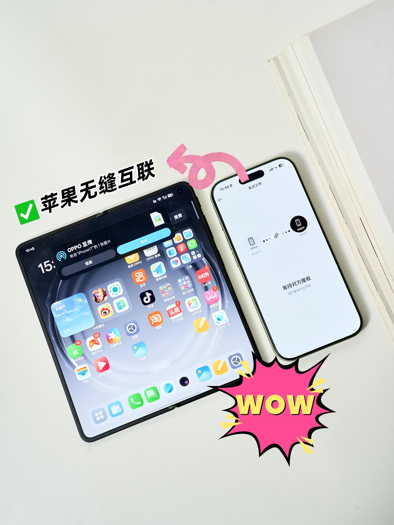 冲着无折痕入的Find N6…结果被这些功能香到了 本来冲着“无感折痕”入的OPPO Find N6 抢先购就直接下单了😆 内屏确实相当平整,几乎看不到折痕 写字、刷剧完全没割裂感👍 结果我用了几天,已经被Find N6的系统功能和AI玩法圈粉了🤯 - 盘几个本打工人真香的功能👇 ✍️ AI手写笔 开会随手画的草图,圈一下直接变专业图表! 手写算式自动出答案 笔记还能转Word,打工人狂喜😍 🪟 全景自由窗分屏 能最多同时开4个窗口 而且支持无极调节,像电脑一样快速切换窗口 多任务丝滑到飞起 最多可以同时开4个窗口 边回消息边看视频边刷小红书 工作娱乐两不误,摸鱼刷视频都不耽误⚙️ 🍎 苹果无缝互联 我目前是iPhone+Find N6双持党 OPPO这手机居然可以跟iOS互传 文件、照片直接拖拽,接力办公太丝滑! 👀我抢到的是1TB版本,真心建议大家直接上大内存 1TB版多1000块但能用更久,用两三年也不卡 存4K视频、办公文件都不慌,早买早赚! 折叠屏OPPO Find N6