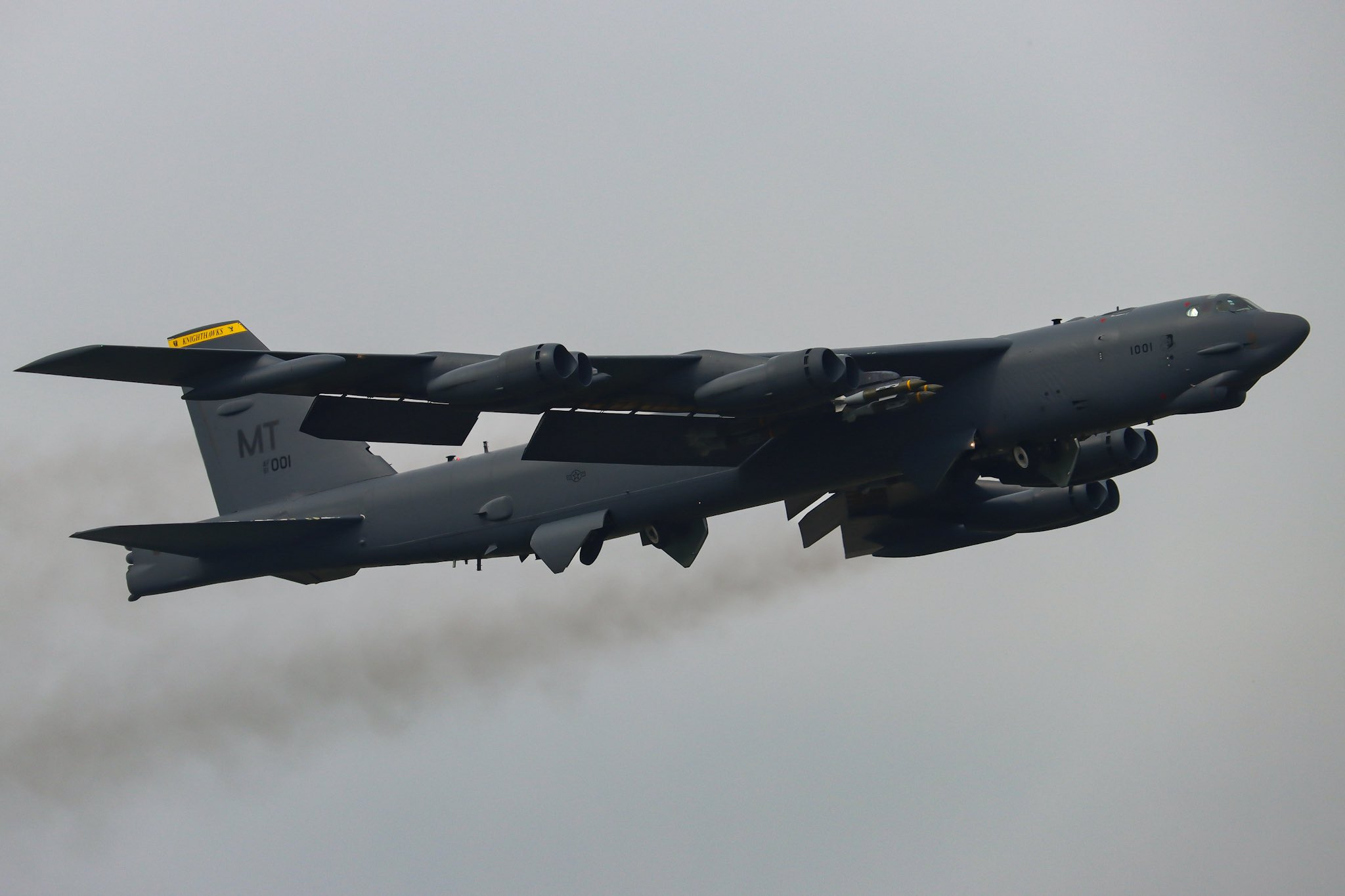 蹲守空军基地的英国航空爱好者们拍到美军B-52H开始挂载GBU-31制导炸弹出击了,之前带的都是AGM-158巡航导弹,现在敢用炸弹说明伊朗防空系统的强度已经被压到了美国人认为风险可承受的地步了