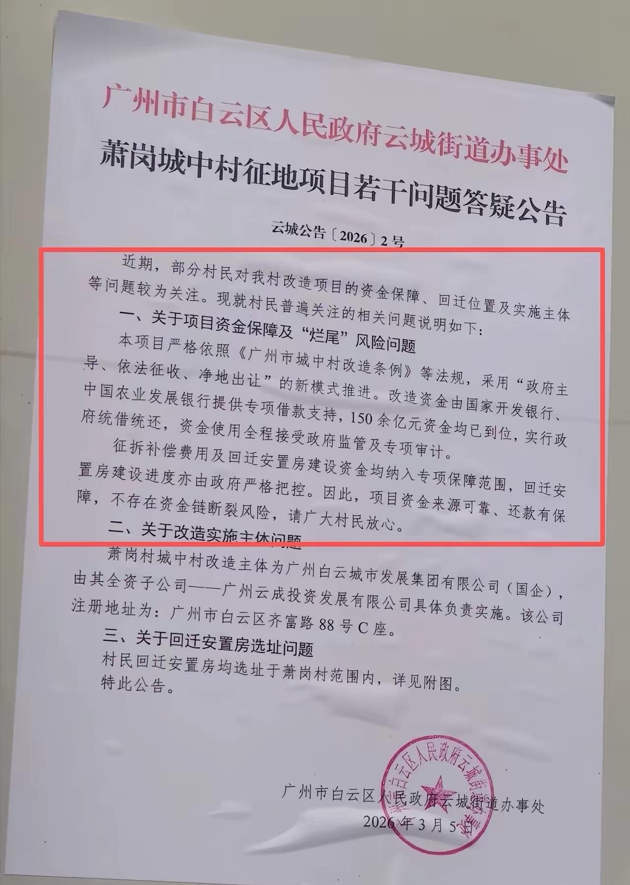 萧岗村旧改有大动作!150亿资金到账,整村“清零”进入倒计时。3月17日首批160多户签约领了1万元奖励,目前签约近2300宗,入户测量率85%。首期1940套安置房已动工,2028年完工。这次是国企主导,政策透明,4月30日前签约奖励更丰厚,村民可得抓紧啦。