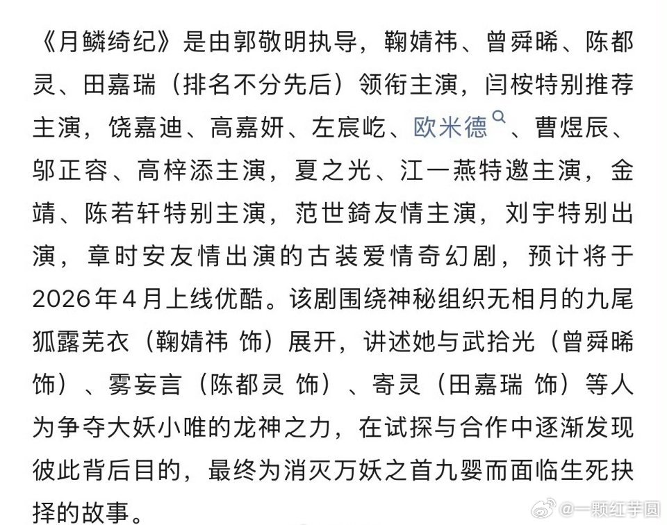 鞠婧祎 曾舜晞 陈都灵 田嘉瑞《月鳞绮纪》(排名不分先后)播前招商,预计4月优酷开播!