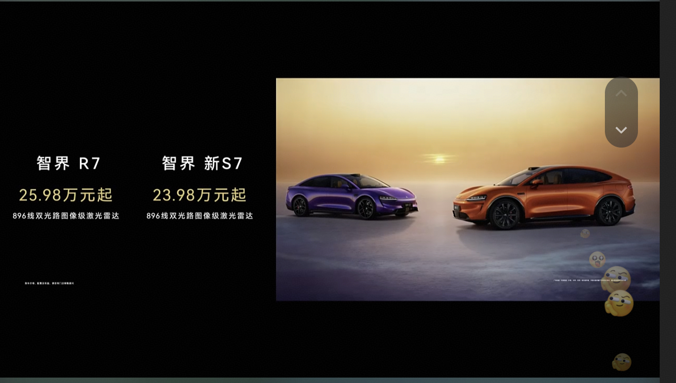 华为发布会 智界R7新S7焕新登场!暗夜紫沉稳、活力橙元气,赤茶橘内饰颜值爆表!标配896线激光雷达+鸿蒙ALPS健康座舱,而且价格是真的非常给力!