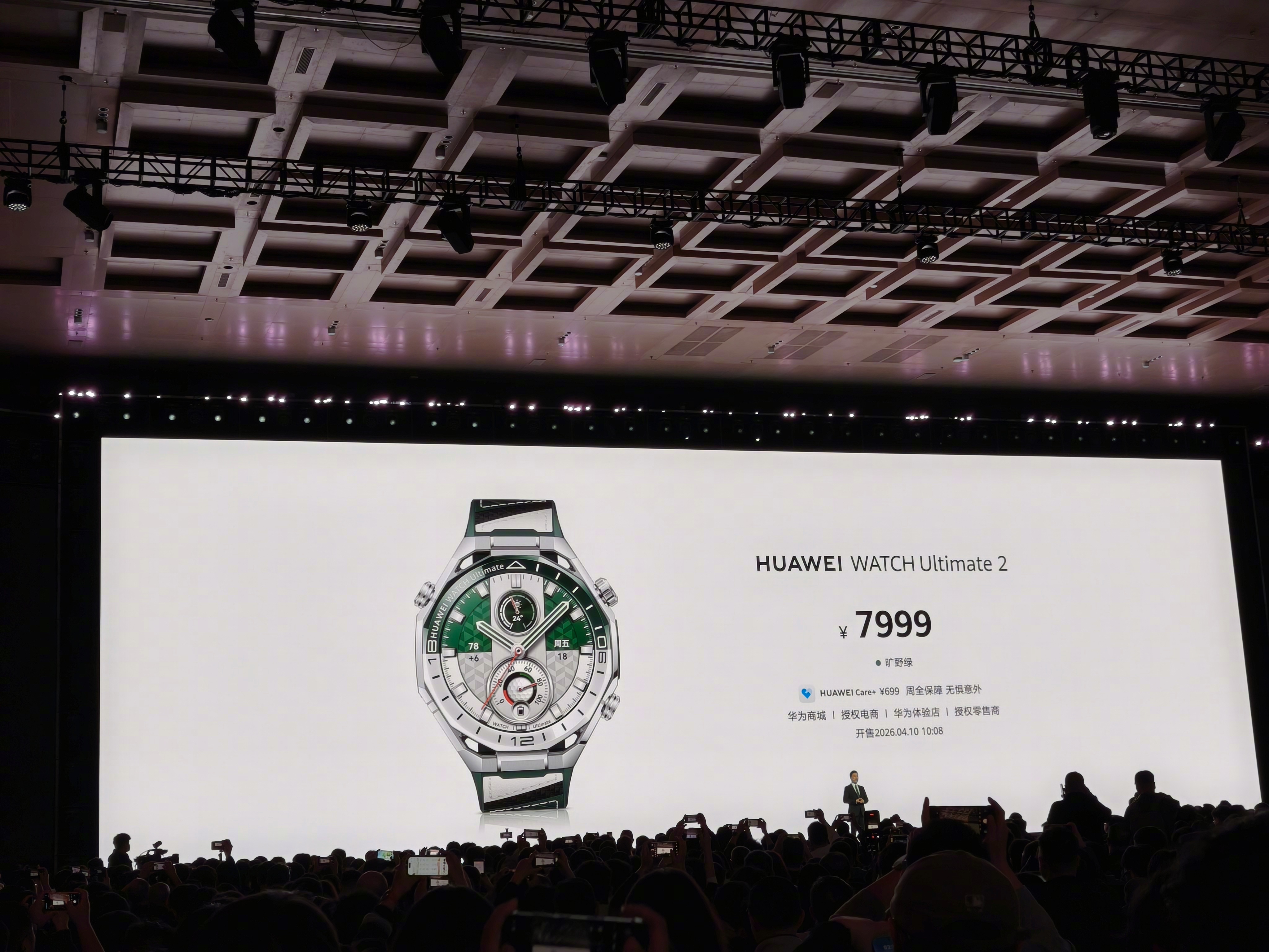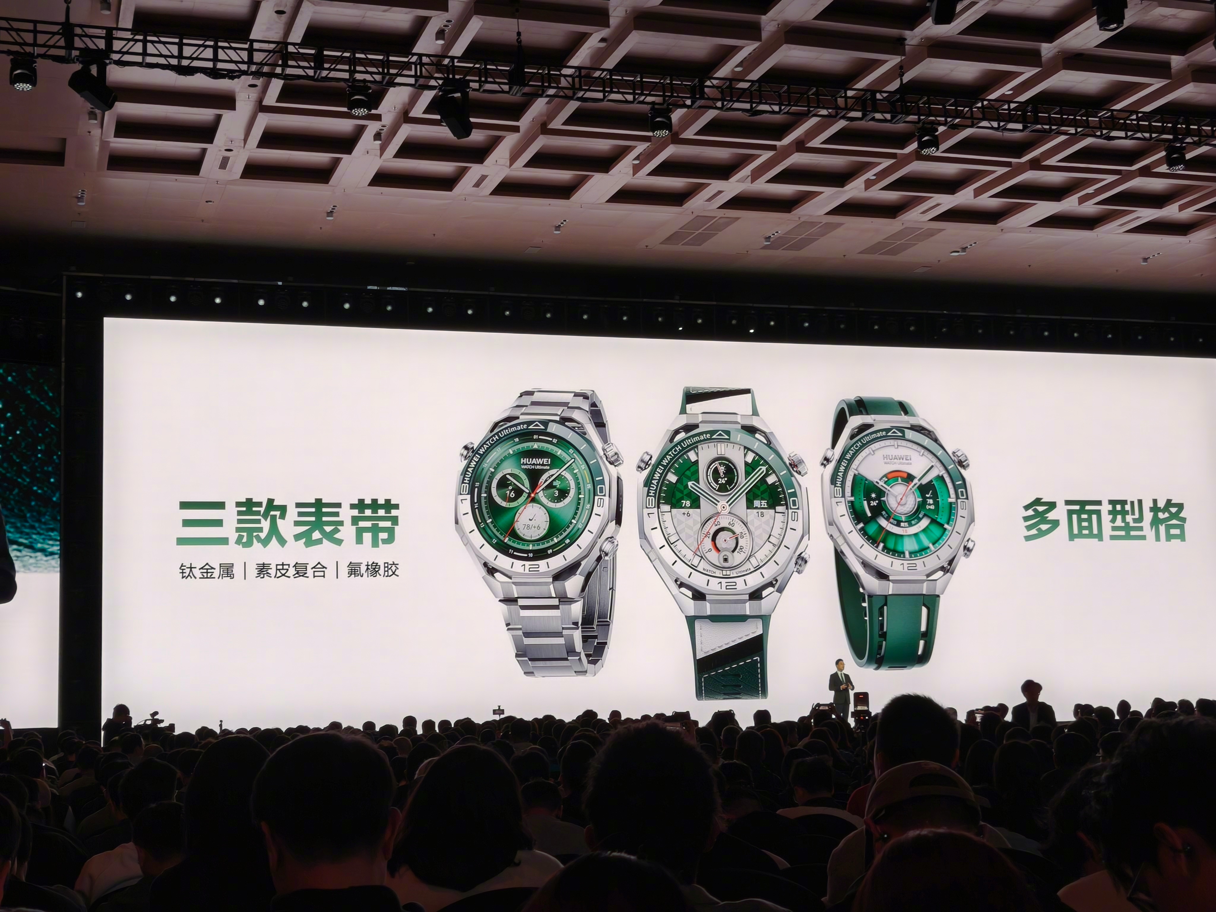 华为春季全场景新品发布会 多款穿戴设备亮相:华为WATCH Ultimate 2非凡探索旷野绿堪称“腕上高球教练”,升级高尔夫练习场与球场模式,支持17000+球场地图,售价7999元;