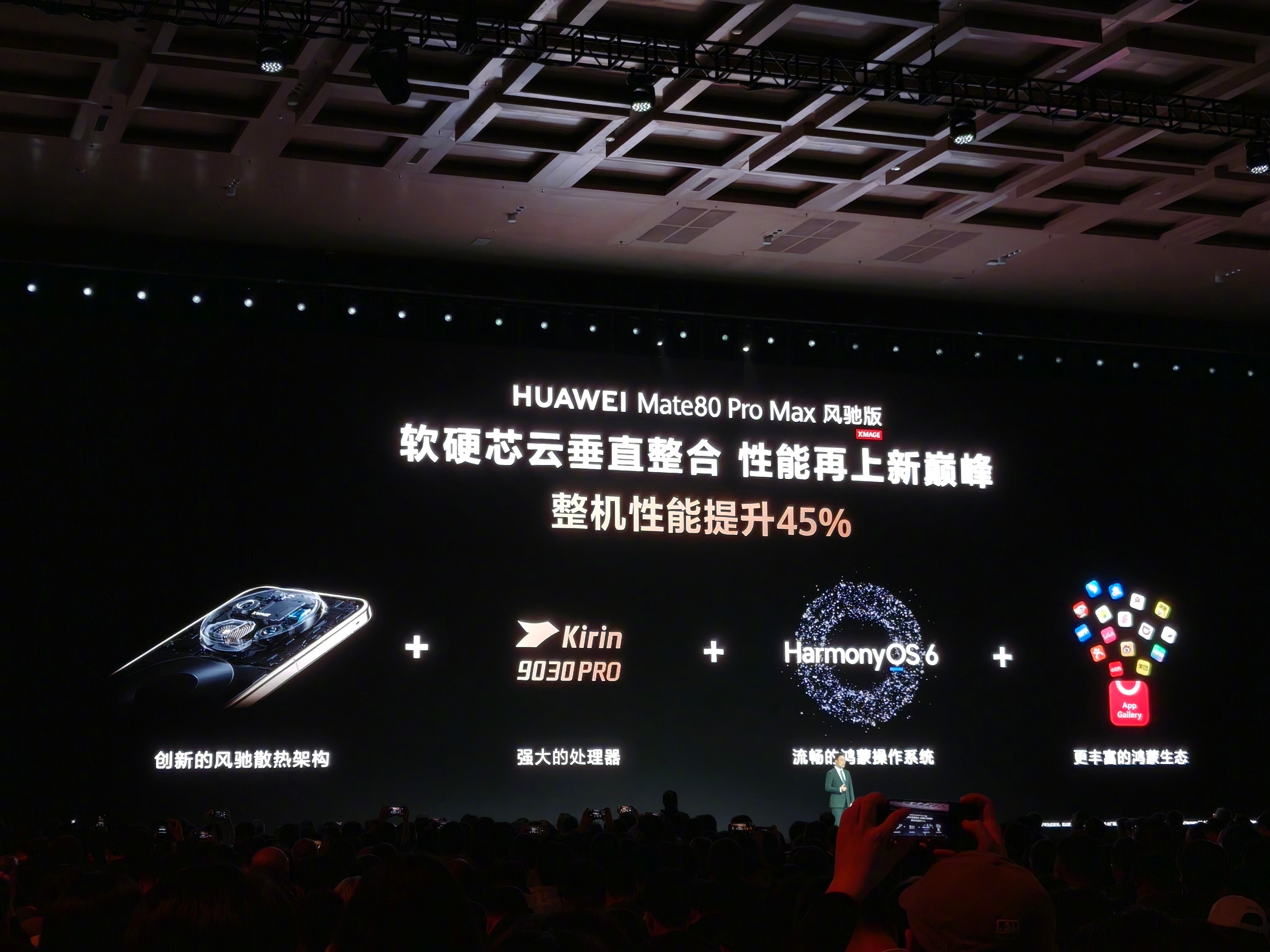 华为春季全场景新品发布会真的全程干货,首先是华为Mate 80 Pro Max风驰版的正式发布。首发搭载华为风驰散热架构,带来极致的温控能力与性能释放稳定性,配合麒麟9030 Pro芯片与更丰富的鸿蒙生态,整体性能大幅提升45%,是游戏好搭子更是直播神器,旗舰体验拉满,售价8499元起。随后发布的华为畅享 90系列,更可以说是千元机王炸产品,全系搭载麒麟8系芯片、鸿蒙6超丝滑方舟引擎、鸿蒙智慧通信等旗舰同款功能。这次还有华为史上最大8500mAh巨鲸大电池,起售价更惊喜:1299元起!