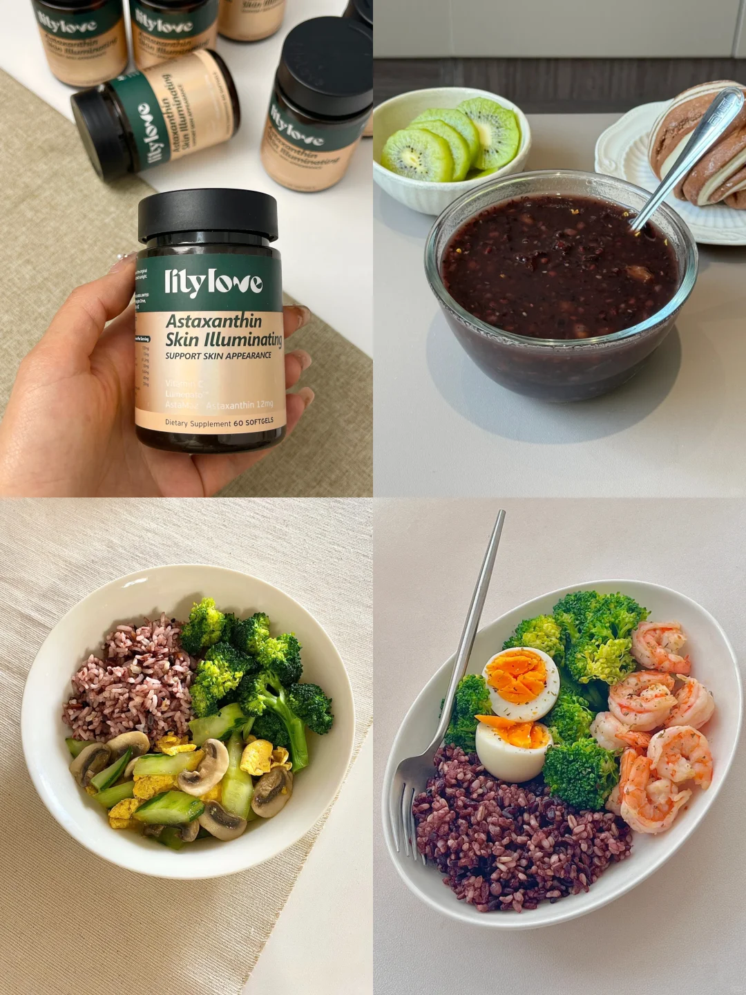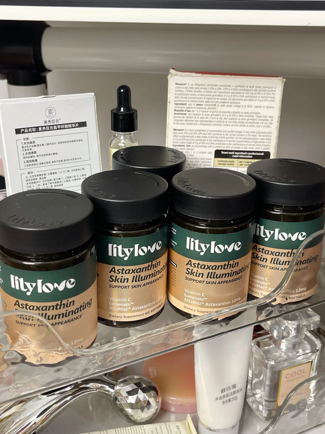 一是从去年开始就一直在吃虾青素。牌子是lilylove家的,也是看别的姐妹分享被种草的。我每天会在早餐晚餐的时候各吃一粒,这样吸收更好,比起一天一粒,更能稳定维持皮肤状态。而且它是超临界提取的,成分干净,长期吃也安心。它里面除了虾青素油,还有白番茄油,和蒸番茄同理但是更好吸收,而且就像“内服防晒”一样,帮助皮肤抵御紫外线伤害,不容易晒黑长新班。加上烟酰胺辅助代谢,这样新旧波点都能照顾到,皮肤也越来越干净。
