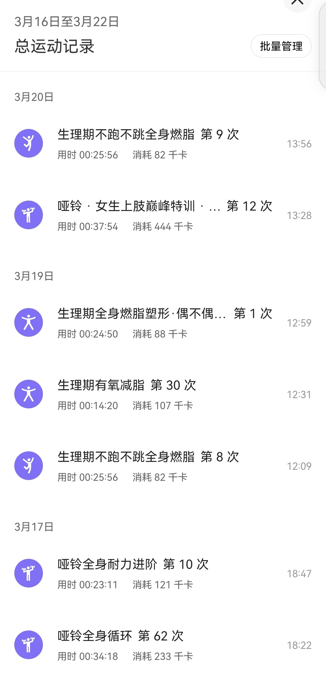 如常一周三练,就算生理期也会温柔动一动~ 分享我的经期运动清单👇 ✅ 首选:上肢哑铃训练、轻有氧燃脂(k1级别)、舒缓瑜伽、盆底肌修复、慢走、轻柔拉伸 ✅ 避雷:绝对避开跑跳、卷腹等腹部发力动作,也别碰高强度HIIT ✅ 细节:穿透气吸汗的运动衣,做好腹部保暖,拒绝冷水和冷风直吹 不用强迫自己大汗淋漓,微微发热、身体舒展就刚好~ 不焦虑、不内耗,特殊时期也要好好爱自己💪
