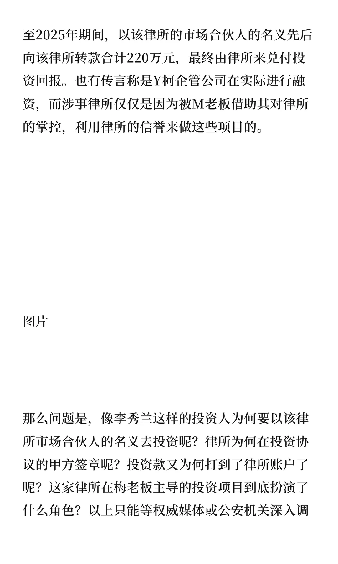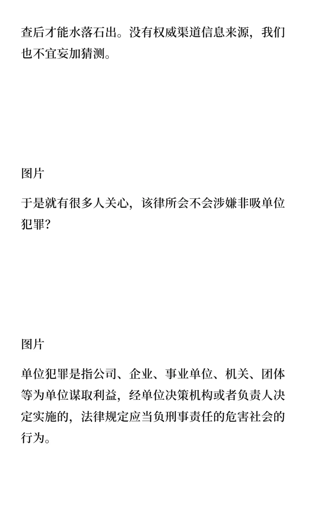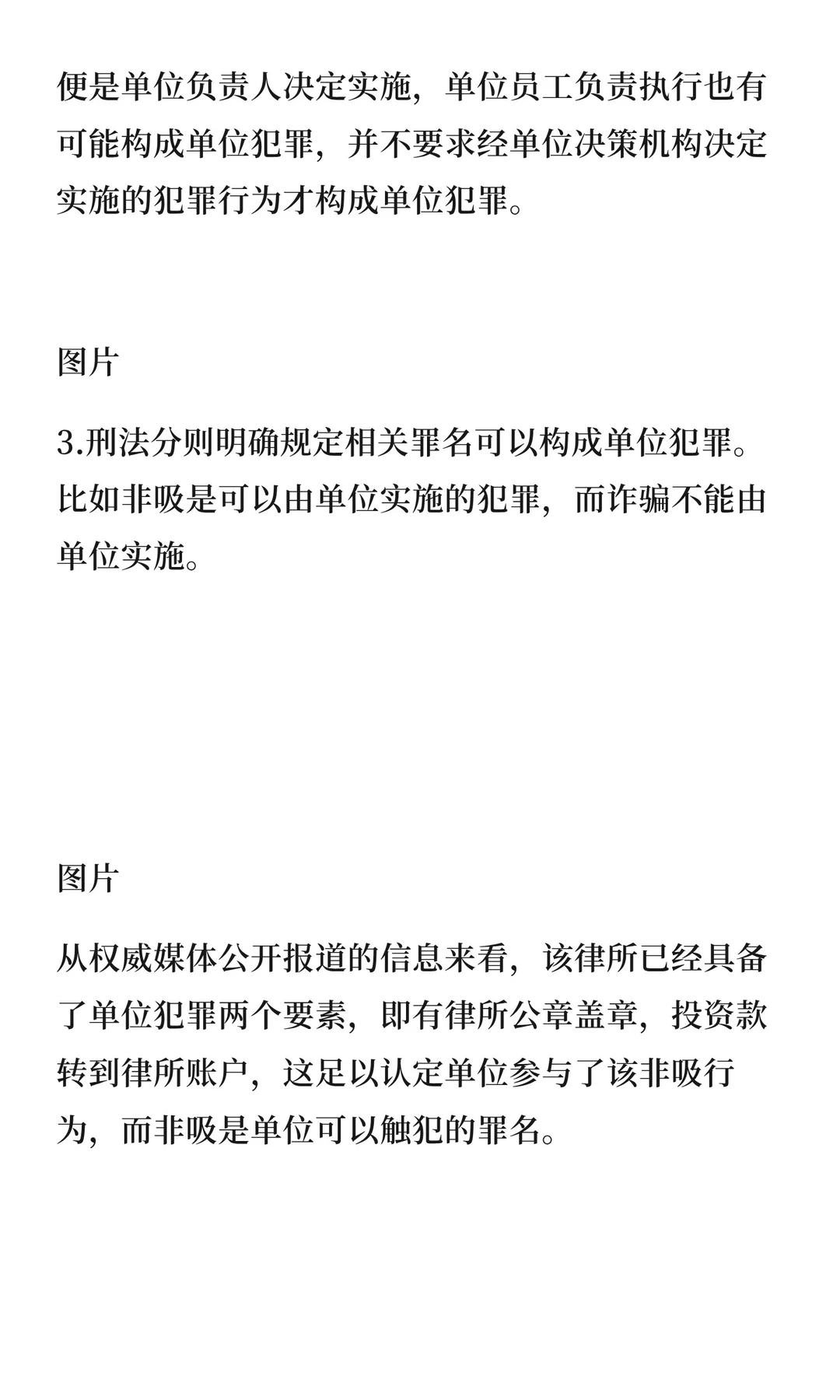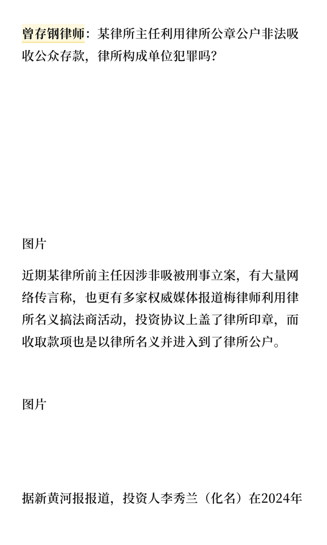 曾存钢律师指出,某律所主任利用律所公章和公户非法吸收公众存款,涉及单位犯罪。律所是否构成单位犯罪需满足三个条件:为单位谋利、经决策机构决定、触犯相关罪名。目前律所发布公告称项目与律所无关,警方称不涉及单位犯罪,真相待查。