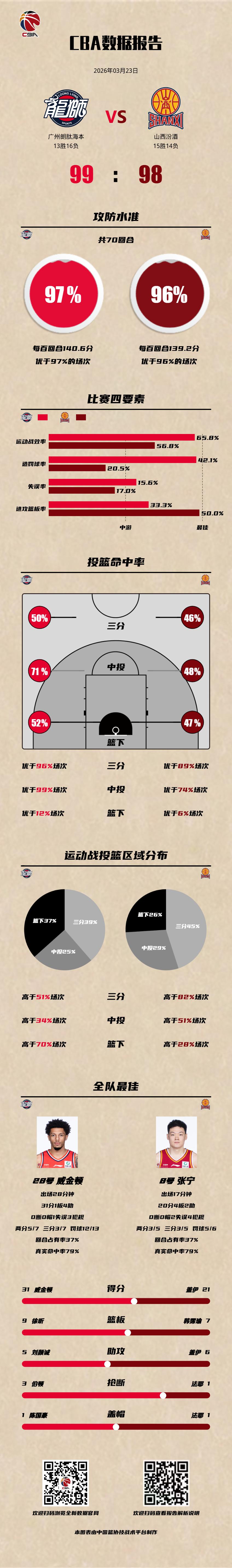广州朗肽海本 99-98 山西汾酒 龙狮男篮vs山西男篮 广州朗肽海本:威金顿31分4助攻,霍勒迪24分3篮板,徐昕12分9篮板; 山西汾酒:盖伊21分6助攻,张宁20分4篮板,奈特11分6助攻。以城之名