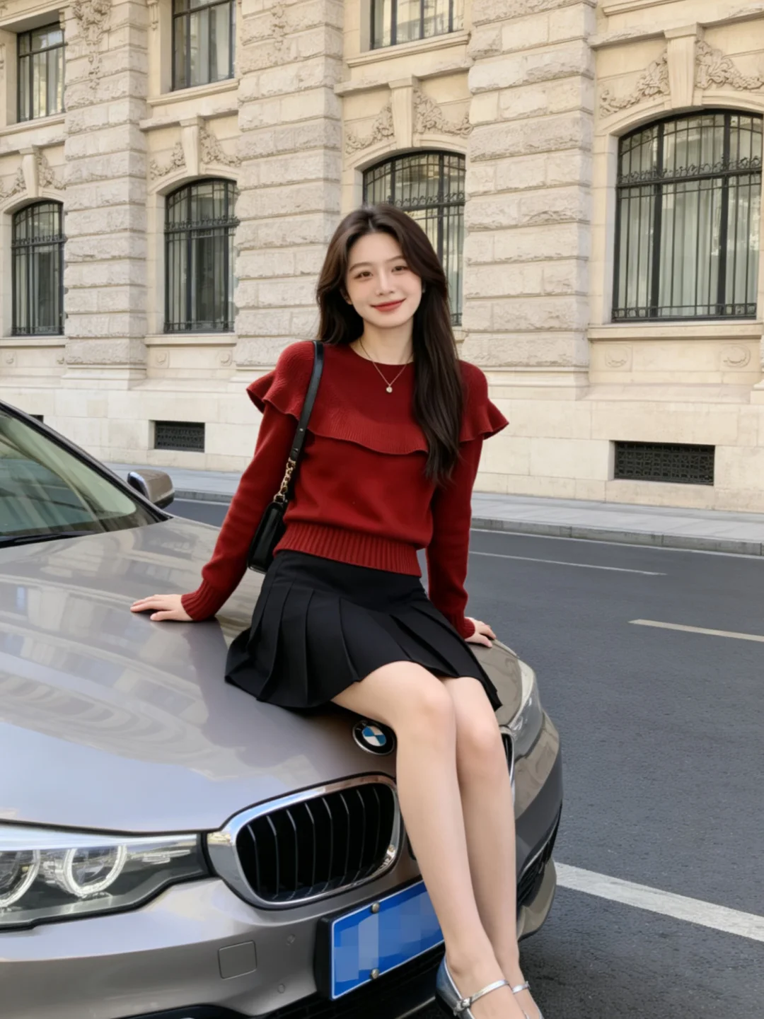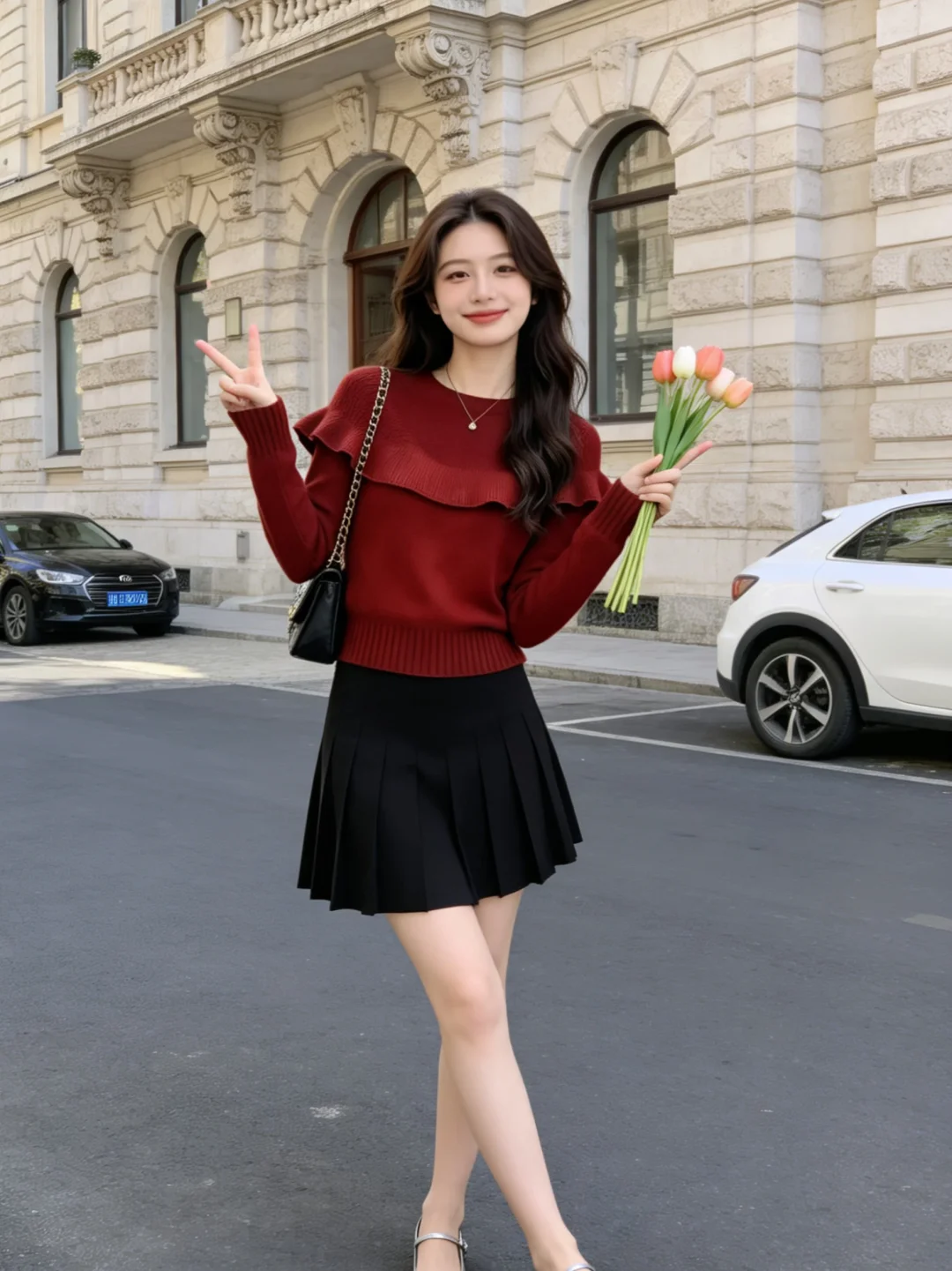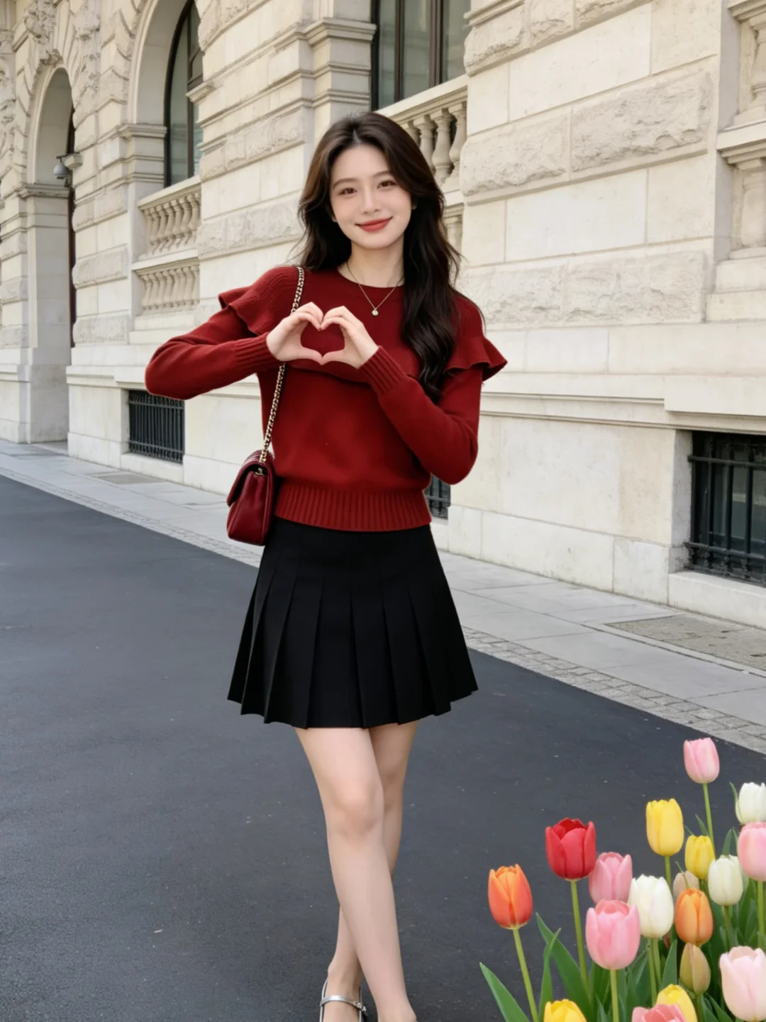 翻红吧衣橱 红色系 红色毛衣 红色氛围感 半身裙 荷叶边毛衣 春季穿搭 ootd穿搭 街拍