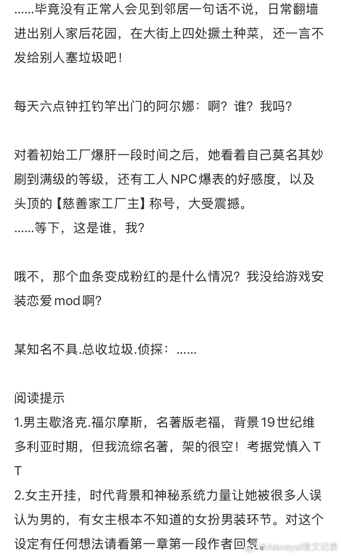 推文 连续两周打开晋江这本都挂在我的【猜你喜欢】第一位,还蛮好奇的!但是点开评论好像是女扮男装,我前段时间看了好多女扮男装文了,有点腻了QAQ,但我也好久没看综名著了。