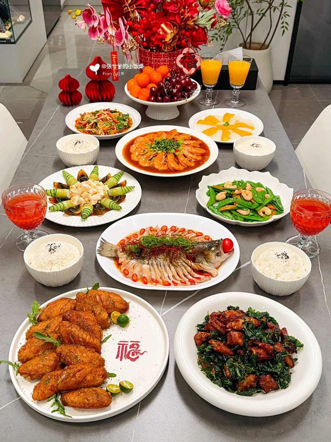 图5️⃣:椒盐鸡翅➕清蒸开屏鲈鱼➕薄荷炸排骨➕香辣盆盆虾➕荷兰豆炒虾仁➕皮蛋豆腐➕凉拌豆腐丝➕黄米凉糕