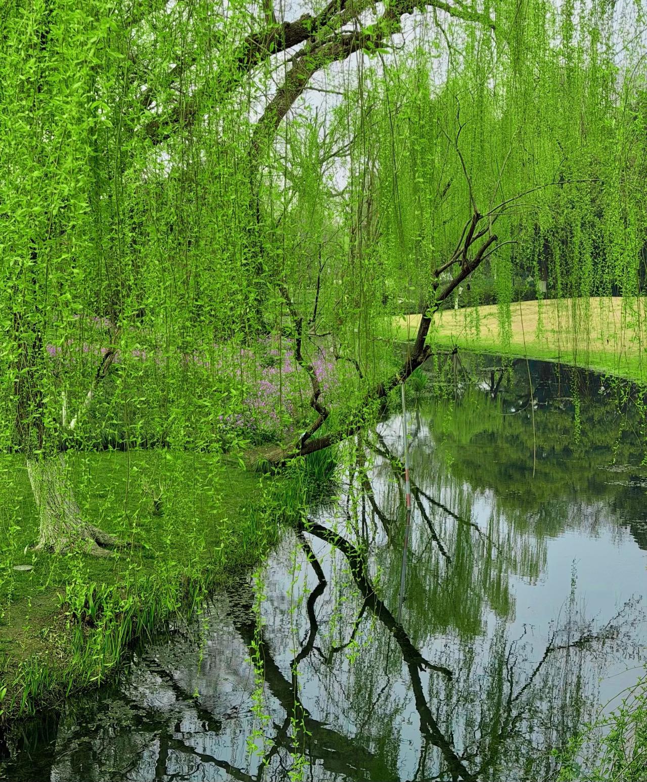 来江南吧, 看一场柳丝与湖水的缠绵! 总感觉江南的春天, 从柳树抽芽的时候就已经