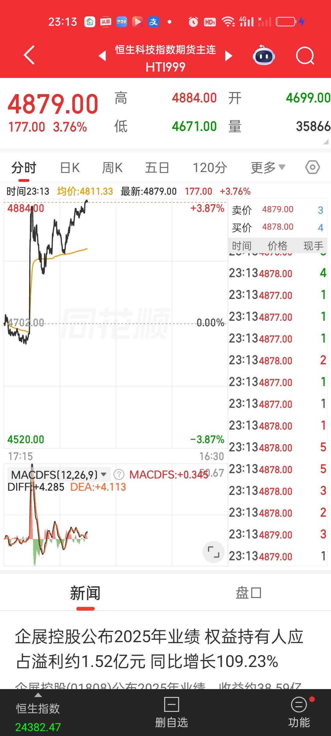 此刻外围市场依旧是暴涨的走势。这种走势非常好,如果能坚持到收盘,那明天我们就稳了。不仅仅会高开,而且还会高走。 对于明天来说,高开是肯定的,毕竟外围数据这么好,港股两大期货指数也都涨了接近4%,所以从这个角度讲,明天高开板上钉钉。但是不是一定会高开低走,我不这么看。首先市场上都是哪些人等着进场?而筹码现在又在哪些人手里?我们要搞清楚这两个问题。 不错,肯定会有情绪的宣泄,会有人趁着反弹减掉仓位。但理论上讲深套的人没有减仓的急迫性。因为已经产生了巨额亏损,就算现在减仓也已经没有意义。那么减仓的力量就主要来自今天在低位买入的人以及已经满仓的人。 因为假设明天高开4%,今天在低位买入的人是有利润空间的,这个T他们自然会做,顺水推舟的事情。满仓的人要空一些仓位,也会趁着高开减一些。但这最多只会影响开盘10--15分钟。一旦减仓力量衰竭,买方力量开始大于卖方力量。指数还会朝上。所以我不认为明天一定会高开低走。我更看好明天高开高走。