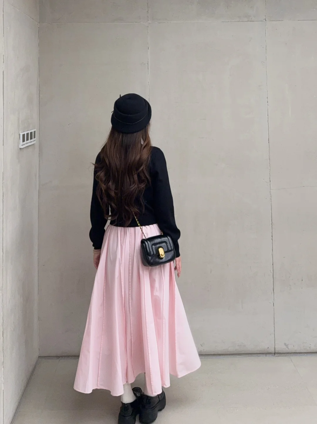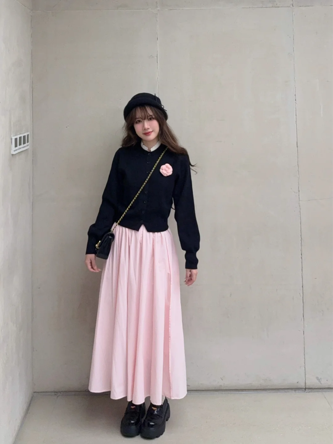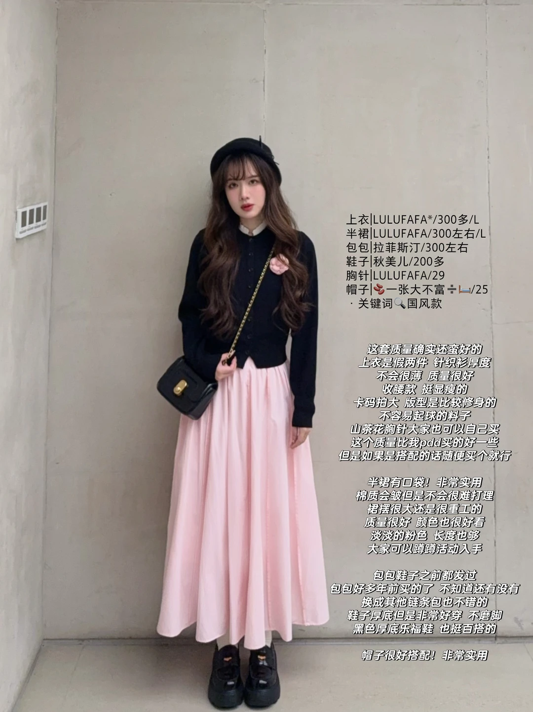168/105左右 黑粉配色也很春日!! 黑色假两件➕粉色半裙 郁金香既视感🌷 这套很适合参加婚礼或者约会见家长穿 有质感又很大方得体 不会喧宾夺主 很乖可盐可甜 大大方方的漂亮那种感觉 很显气质~ 质量是很好的 单品也可以拿出来搭配别的衣服 比如说假两件上衣换个白色胸针 可以搭配白色蛋糕裙(更不挑人一些) 不同颜色的胸针配饰 搭配不同颜色的下装/裤子 搭配拖地牛仔裤➕尖头鞋就很通勤了 总之是比较实用日常的单品 ~ 这个假两件上衣也可以穿来面试/复试 怕粉色太扎眼 可以把裙子换成白色或者黑色