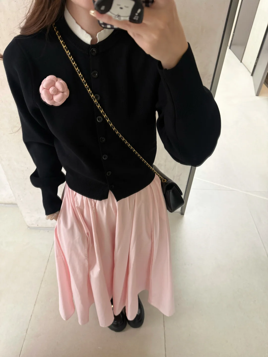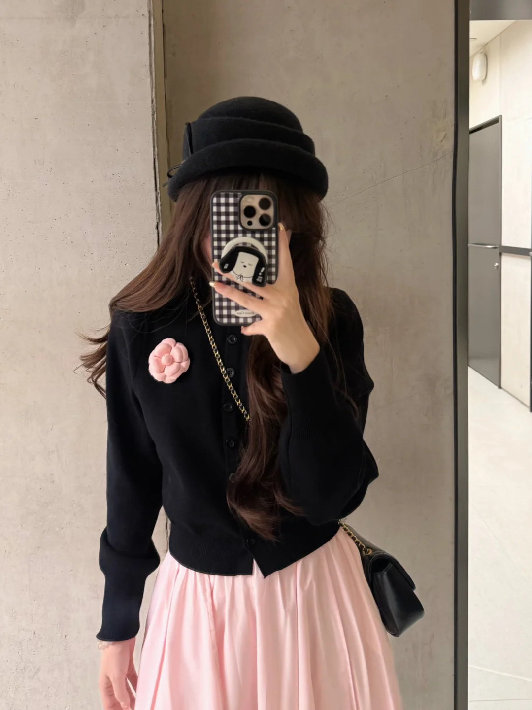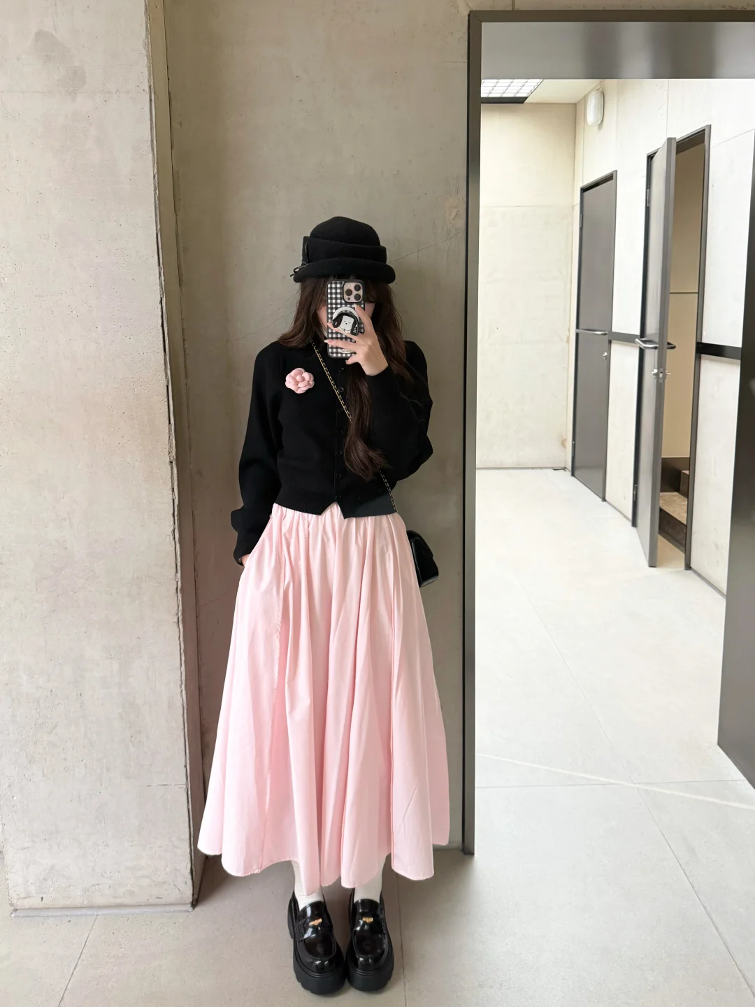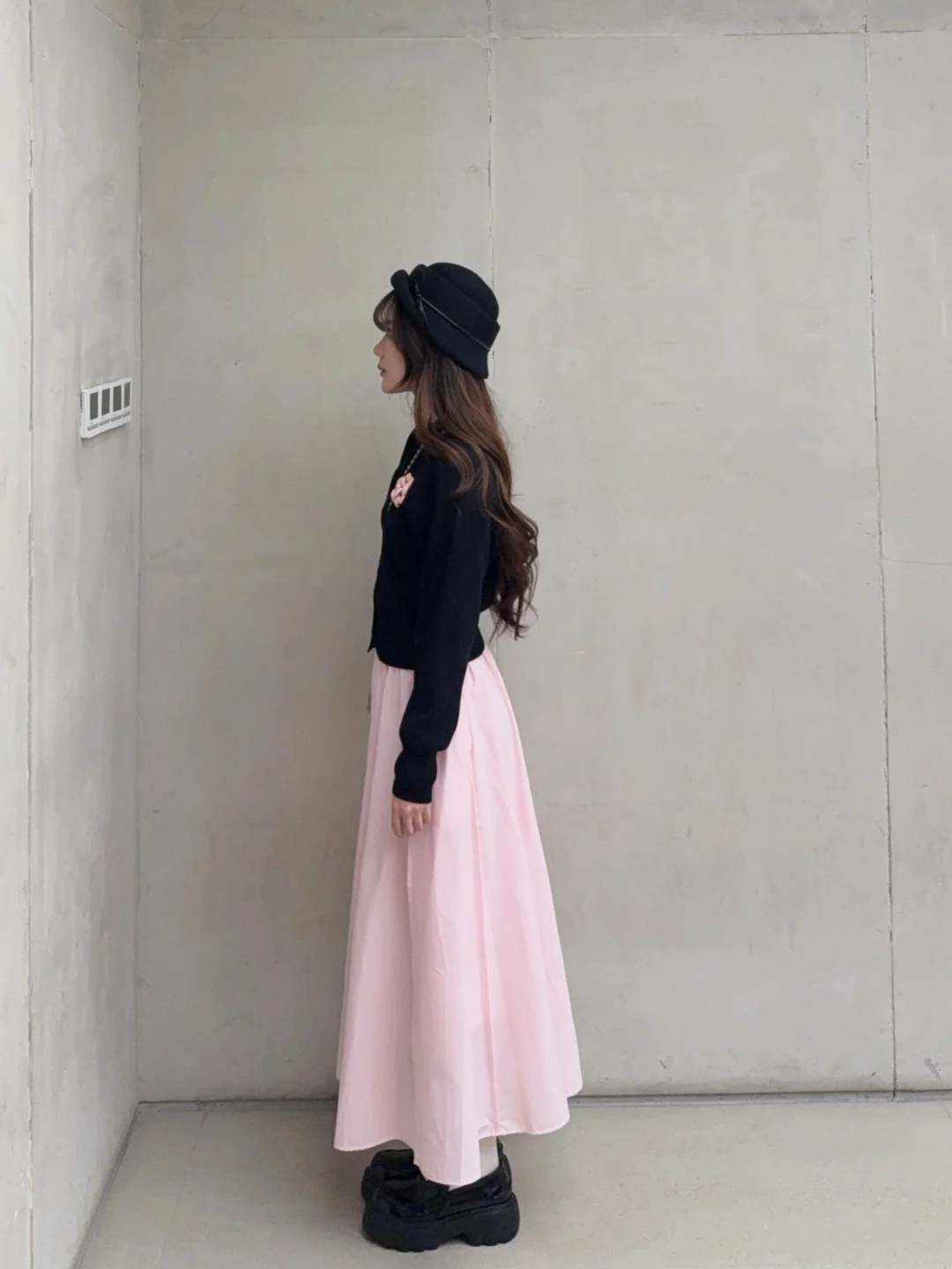 168/105左右 黑粉配色也很春日!! 黑色假两件➕粉色半裙 郁金香既视感🌷 这套很适合参加婚礼或者约会见家长穿 有质感又很大方得体 不会喧宾夺主 很乖可盐可甜 大大方方的漂亮那种感觉 很显气质~ 质量是很好的 单品也可以拿出来搭配别的衣服 比如说假两件上衣换个白色胸针 可以搭配白色蛋糕裙(更不挑人一些) 不同颜色的胸针配饰 搭配不同颜色的下装/裤子 搭配拖地牛仔裤➕尖头鞋就很通勤了 总之是比较实用日常的单品 ~ 这个假两件上衣也可以穿来面试/复试 怕粉色太扎眼 可以把裙子换成白色或者黑色