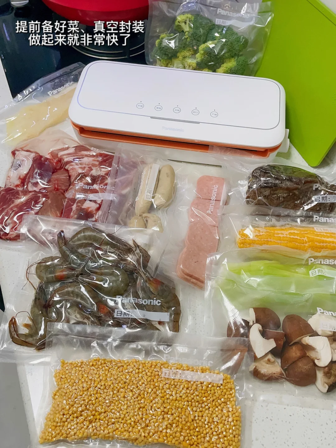 🍀平时做饭、一人完成肯定很慢。我家通过长时间的两人配合,已经磨合出了一套快速高效的流程。一般我们都是提前把菜备好,放保鲜袋存储,用真空封口机密封好。用的时候直接烹制,食材依然新鲜,也让做饭更加条理分明。