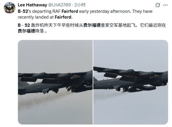 注意B-52H挂载的是JADM制导炸弹,而不是之前挂的JASSM隐身巡航导弹。看来美国的JASSM库存不够了, B-52H这种完全没有突防能力的战略轰炸机被迫使用射程很近的JADM抵近轰炸,被击破的危险性大增