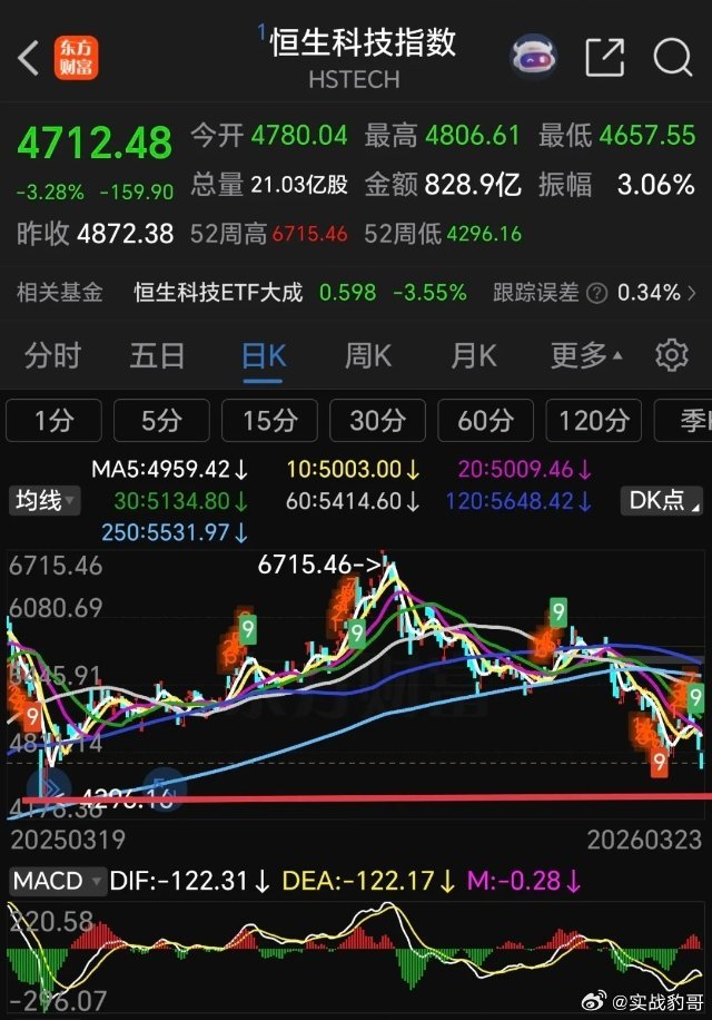 港股通创新药与恒生科技收盘,比预期的还要弱。恒生科技原来预期能在4500-4600区间止跌企稳,看来这个区间止不住,今天最低点打到4657点,4500再砸一天就能跌到位,恒科还要继续向下寻找支撑,看前面低点4300点支撑力度怎么样吧。 港股通创新药马上就要到了前面低点,这个低点守住了,就是一个小双底,守不住,继续下跌,看下方缺口支撑位1500点左右,还有15%。26年以来,日子太不好过了。