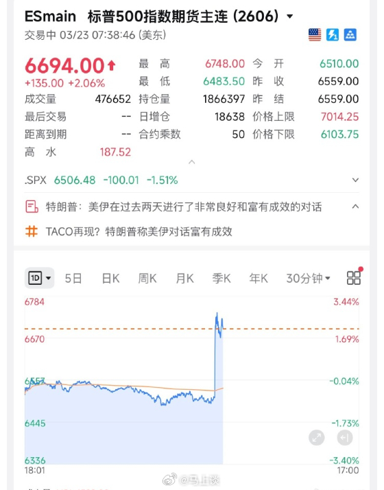 懂王又开始画K线了!特朗普说美国伊朗成功开展对话,推迟5天打击伊朗发电站。黄金白银美股应声上涨,石油则暴跌。当地时间23日,美国总统特朗普在“真实社交”平台发文称美国和伊朗进行了非常良好和富有成效的对话(伊朗否认与美国沟通),已指示暂停对伊朗发电厂和能源基础设施的一切军事打击,为期五天。告诉我,21世纪最伟大的操盘手到底是谁?