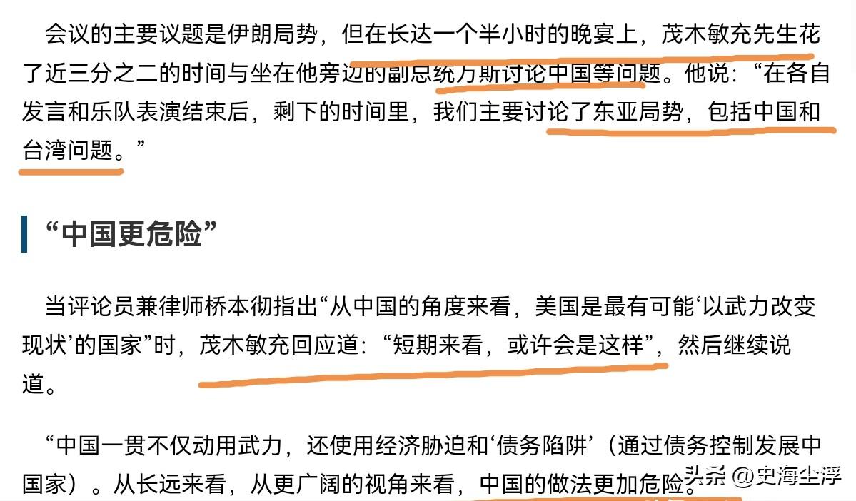 访美刚一回来,日本外相茂木敏充就对我们定了性,态度非常强硬!3月23日,根据日本产经新闻报道,访美结束之后,日本外相茂木敏充披露了更多的细节。 根据日本产经新闻等媒体披露,茂木敏充在访美期间的招待晚宴上,花费近三分之二的时间与美国副总统万斯交谈,核心议题围绕东亚局势、中国与台湾问题展开,这样的沟通时长与话题选择,足以说明日本当前对华政策的核心导向,就是配合美国围堵中国,在涉华核心问题上不断制造事端。 茂木敏充在公开言论中,刻意编造中国动用武力、实施经济胁迫、制造债务陷阱的虚假说法,还妄言中国的做法从长远来看更具危险性,这些表述完全违背事实,是典型的抹黑与栽赃。 中国始终坚持和平发展道路,在国际交往中秉持互利共赢原则,所谓债务陷阱论早已被多个国家与国际机构辟谣,中国对发展中国家的援助与合作,始终尊重他国主权,不附加任何政治条件,目的是帮助当地实现发展,而非所谓的控制。 经济胁迫更是与中国的外交理念和实践背道而驰,反倒是个别国家长期滥用单边制裁、技术封锁,才是全球经济稳定的真正威胁。 茂木敏充无视这些基本事实,刻意编造谎言抹黑中国,本质是为日本的对华强硬立场寻找借口,也是为配合美国的印太战略制造舆论。 台湾问题是中国的核心利益,是中日关系中不可逾越的红线,中国多次明确表态,要求相关国家恪守一个中国原则,慎重处理涉台问题。 但茂木敏充在访美期间主动与美方讨论台湾问题,回国后又公开对中国定性指责,丝毫没有顾及中国的核心利益与严正立场,这充分说明日本在台湾问题上贼心不死,始终想借台湾问题牵制中国发展,试图插手中国内政,破坏中国的统一大业。 日本的这一行为,不仅违背中日四个政治文件的精神,也违反国际法基本准则,更是对地区和平稳定的严重破坏。 茂木敏充的强硬表态,不是个人言论,而是日本整体战略转向的集中体现。近年来,日本国内右翼势力不断抬头,在军事、外交上持续突破战后体制束缚,而抱紧美国大腿、将中国定位为严峻挑战,成为日本实现自身战略野心的重要路径。 日本清楚自身实力不足以单独对抗中国,便紧紧依附美国,借助美国的对华遏制政策,趁机提升自身军事能力、扩大国际影响力,同时在台海、东海等问题上不断挑衅,试图打乱中国的发展节奏。 此次访美期间与美方深度沟通涉华议题,回国后立刻公开强硬言论,就是日美勾连的直接证明,日本已经彻底放弃对华友好合作的基调,在战略层面将中国视作主要对手,以对抗思维处理双边关系。 日本的这一战略选择,看似是依附美国寻求安全保障,实则是将自身绑上美国的战车,最终只会损害日本的国家利益。 中日两国互为重要邻国,经贸往来、人文交流有着深厚基础,合作才符合两国人民的根本利益。但日本政府被右翼势力与对抗思维裹挟,无视两国合作的大局,一味追随美国反华,不仅会导致中日关系持续恶化,影响双边经贸、民生等各领域合作,还会加剧东亚地区的紧张局势,让地区国家陷入不安全的境地。 台湾问题事关中国主权与领土完整,中国在这一问题上没有任何妥协退让的空间,任何外部势力的干涉都不可能得逞,日本执意触碰中国红线,最终只会自食恶果。 茂木敏充的言论也让国际社会看清日本的真实面目,日本口口声声维护地区和平与规则,实际却在破坏地区稳定,插手他国内政,编造谎言抹黑他国。这种双重标准的做法,早已被地区国家所警惕。 中国始终坚持通过对话协商解决分歧,维护地区和平稳定,但面对外部势力的挑衅与抹黑,中国也会采取坚定措施捍卫国家主权、安全、发展利益。 日本应当认清历史大势与现实格局,停止在涉华问题上的错误言行,恪守一个中国原则,回归中日友好合作的正轨,而不是在对抗的道路上越走越远,否则只会让日本陷入更加被动的局面,也会给地区和平带来更多不确定风险。