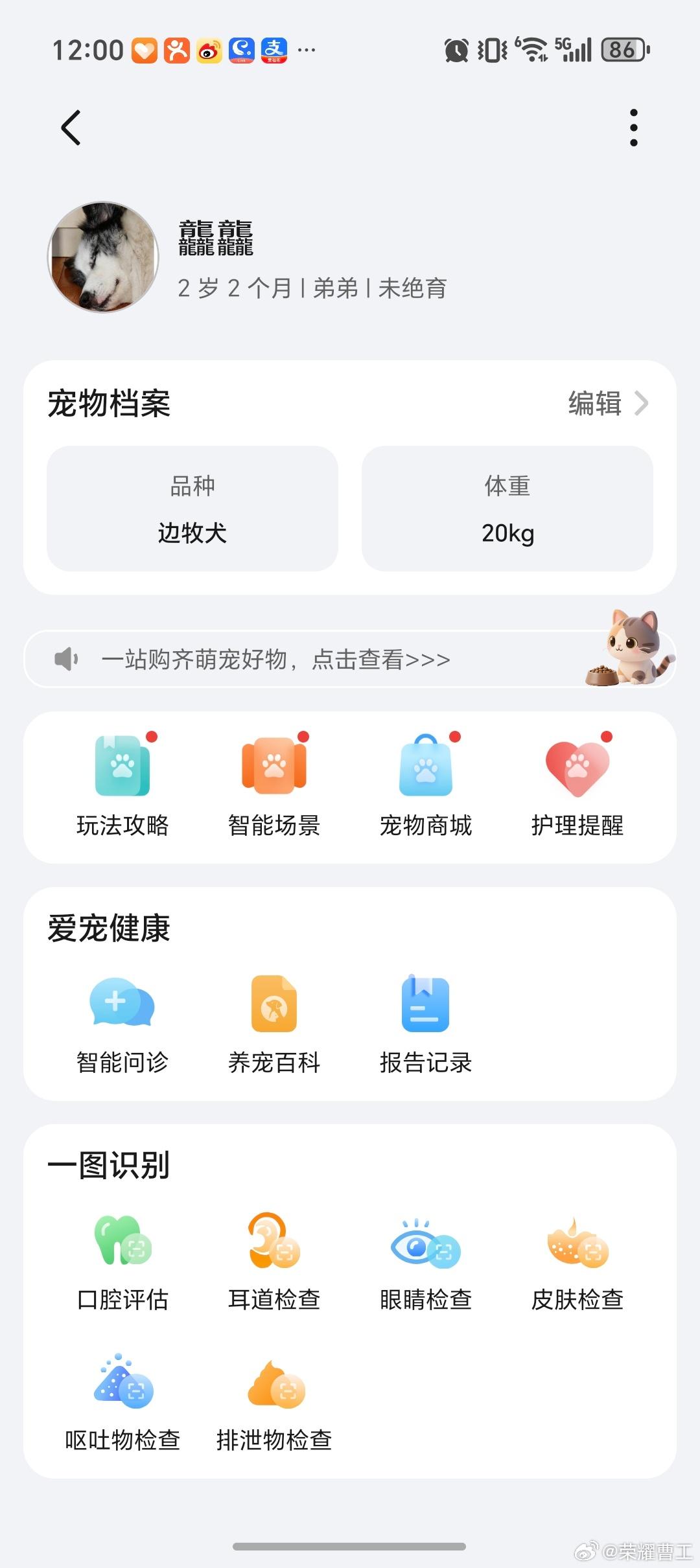 对于家中有宠物的小伙伴们,荣耀研发工程师曹工,专门通过一组图文,介绍了荣耀智慧空间9.60.11.300以上版本,新增了较为实用且贴心的功能:宠物健康档案管理。能够满足大家创建多个宠物档案,例如猫猫、狗狗等等,随时AI问诊,还能够实现健康报告和治疗建议,我觉得蛮好的 畅聊数码新品 数码资讯