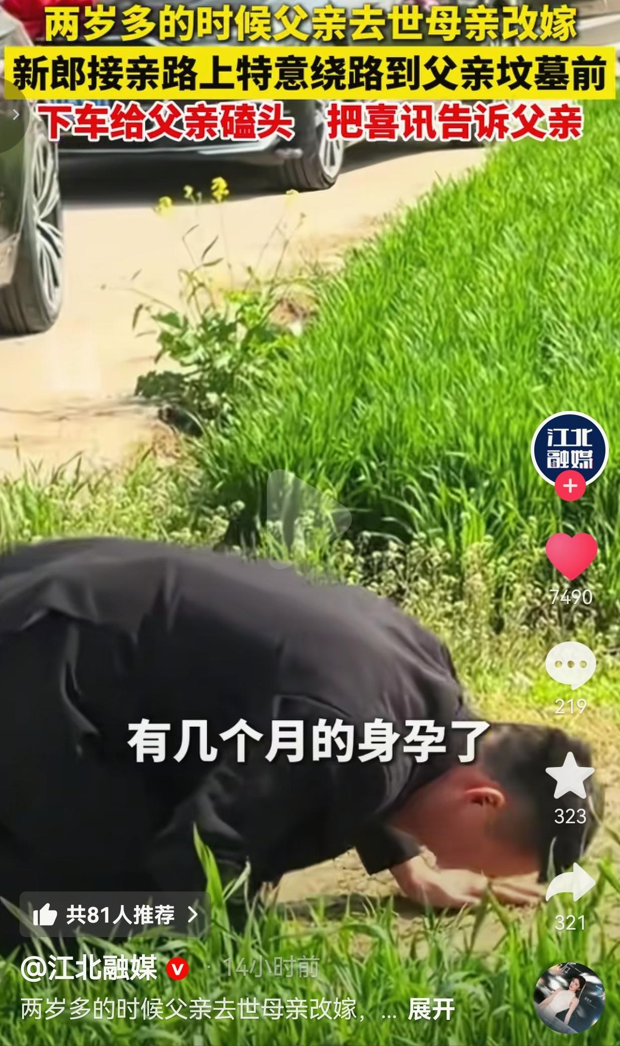 破防了!河南驻马店一个新郎,接亲路上特意绕到父亲坟前,穿着西装跪在地上哭着报喜,这一幕看哭了百万网友! 这个新郎命苦,两岁多的时候父亲就走了,母亲为了生计改嫁,他是跟着叔叔婶婶、爷爷奶奶拉扯大的。从小没爹疼没娘顾,全靠自己摸爬滚打,愣是拼出了买车买房、娶媳妇的日子。 3月23号接亲那天,婚车刚好路过父亲的坟地,新郎说啥也要下车。他媳妇怀着孕不方便下来,他就一个人走到坟前,红着眼眶喊:“俺爸,我今天结婚了啊!您儿媳妇不方便下来,我下来给您磕个头!” 说完“扑通”一声跪在地上,结结实实磕了三个响头,脸都贴到了泥土里,声音哽咽得说不出完整话,连旁边的婚车司机都跟着抹眼泪。 更戳人的是,这婚车还是车队免费赞助的,知道他从小没爹,大伙都想帮衬一把,让他风风光光娶媳妇。   网友看到后评论说:“看得我一个大老爷们眼泪哗哗流!从小没爹的孩子,能混成这样真不容易,这一跪,是给爹报喜,也是给自己争气!” 也有的网友说:“我老公也是从小没爸,结婚那天他也偷偷去坟前磕了头,男人的软肋从来都是没来得及尽孝的爹啊!” 还有的网友说:“这才是真孝顺!不是活着的时候好吃好喝,是混出个人样来,让爹在那边也能挺直腰板!” 也有的网友说:“比那些婚礼上炫富的强一万倍!这才是婚礼上最动人的一幕,看哭了!” 从小没爹的孩子,哪有什么岁月静好,全是咬着牙往肚子里咽的苦。别人结婚有爹忙前忙后,他只能在坟前跟爹说一句“我成家了”;别人小时候骑在爹脖子上撒欢,他只能跟着爷爷奶奶学走路。 可就是这样的孩子,偏偏最懂感恩,最念亲情。他没怨天尤人,没自暴自弃,靠自己的双手撑起了一个家,还在最喜庆的日子里,不忘给爹磕个头报喜。 那些说“没爹没娘的孩子没人管”的,都看看!这就是最好的反击——我没靠谁,照样活成了让爹骄傲的样子!   这世上最戳人的,从来不是大富大贵,而是这份刻在骨子里的亲情。 爹不在了,可他永远是孩子心里的靠山;坟头的土再厚,也隔不断儿子对爹的思念。这个新郎用一跪告诉我们:真正的孝顺,不是给爹烧多少纸,而是活成他希望你成为的样子,让他在那边也能笑着说“我儿,出息了”。 爹走得早,可我活成了他的骄傲!这一跪,是告别,也是传承!😭