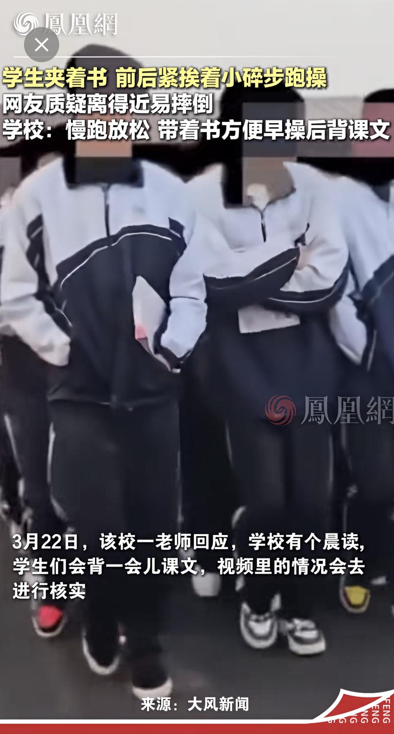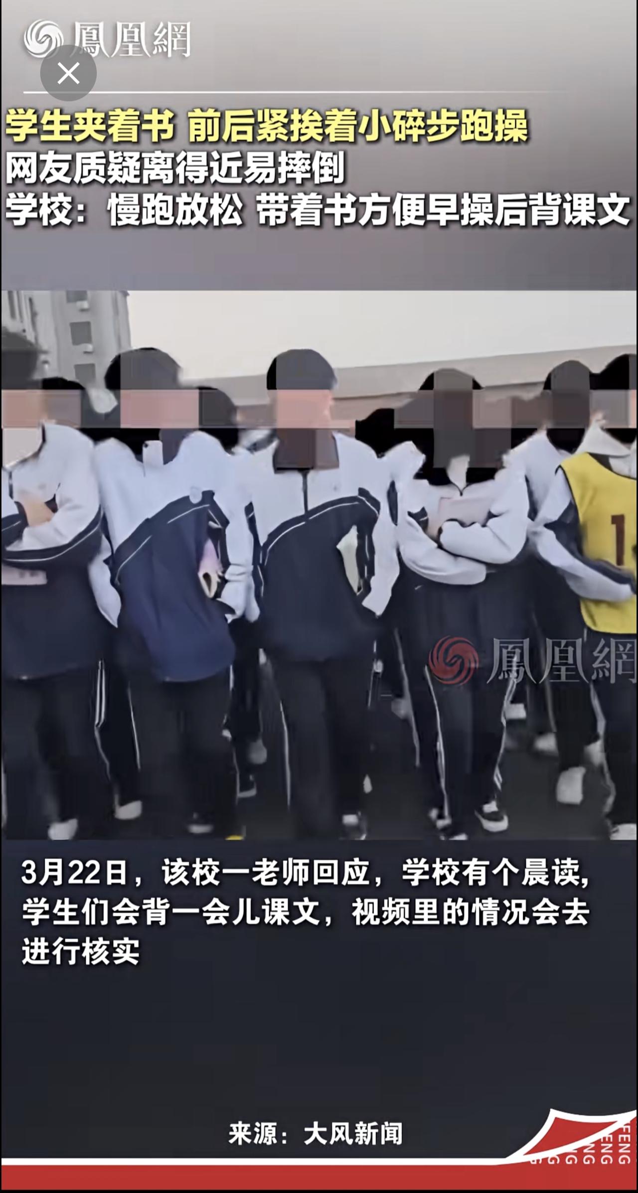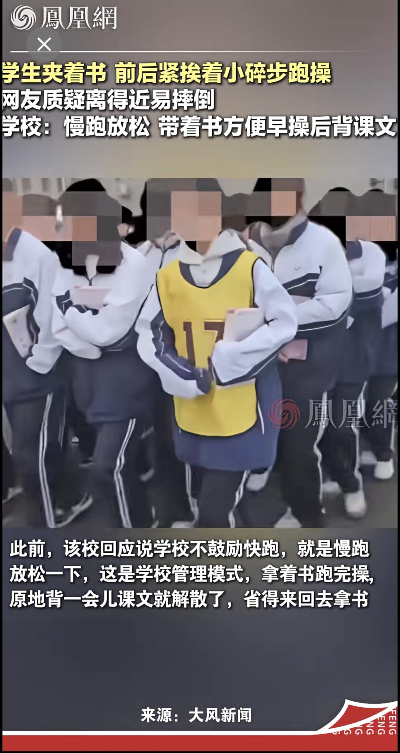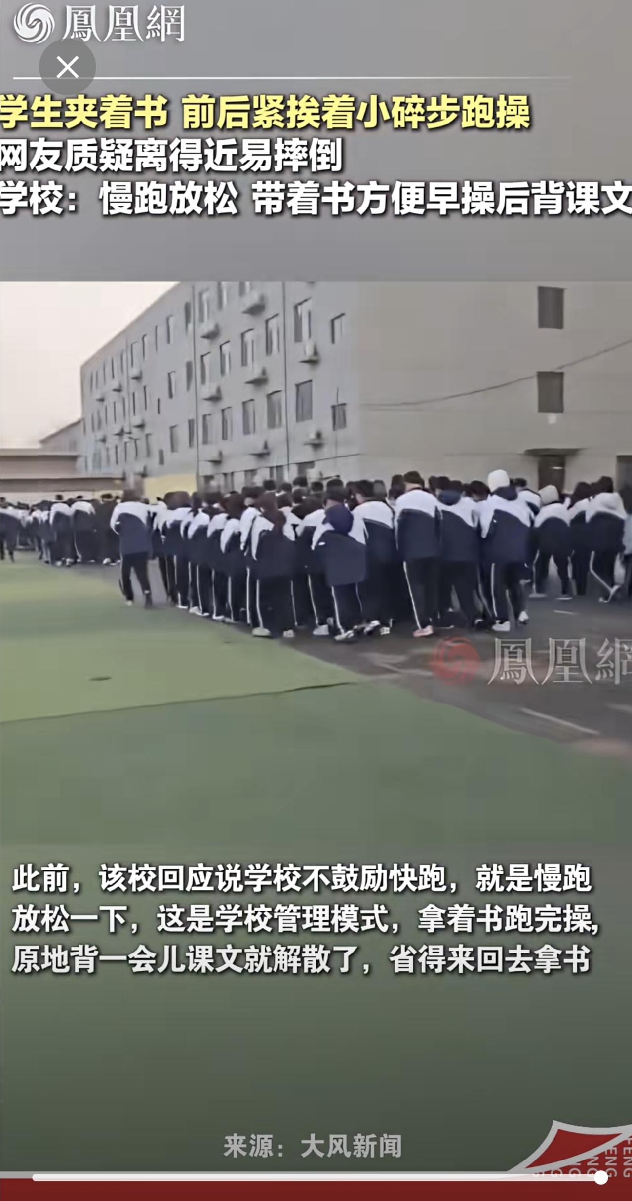 河北一学校学生早操跑步还带着书,学校:学校管理模式,早操后背课文教育 石家庄