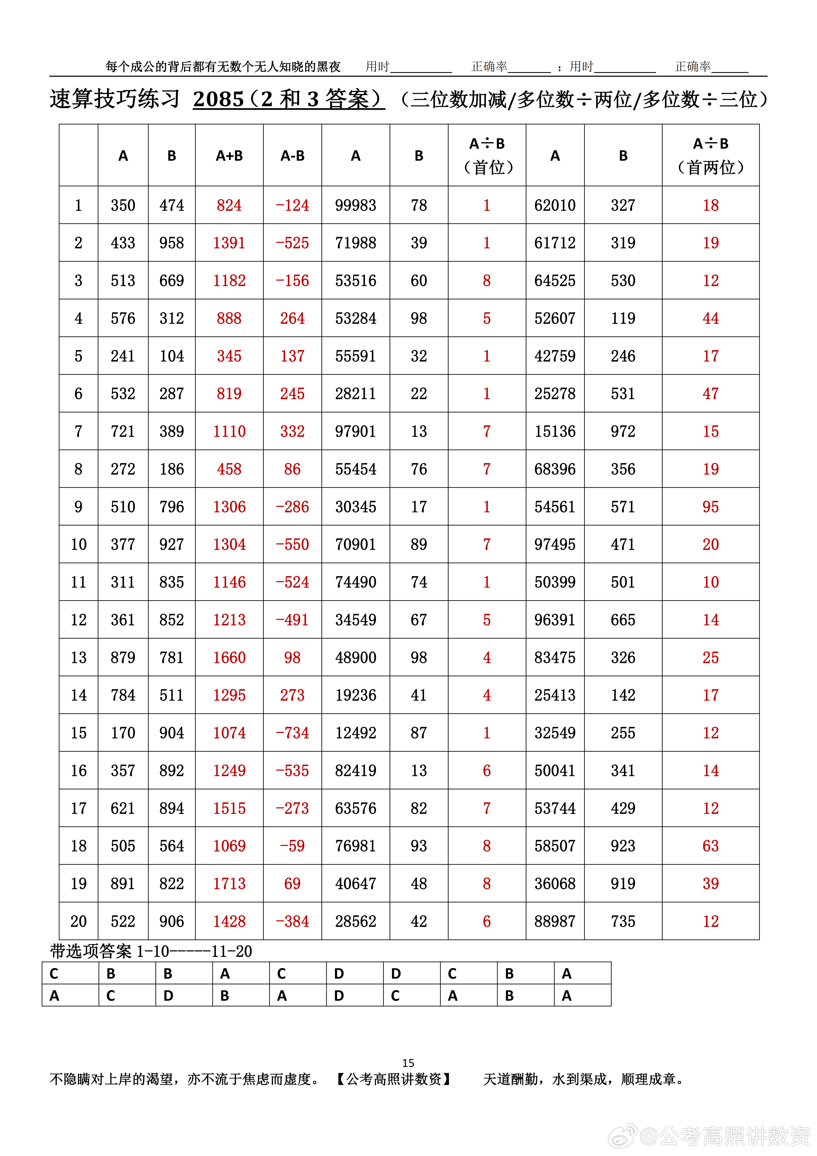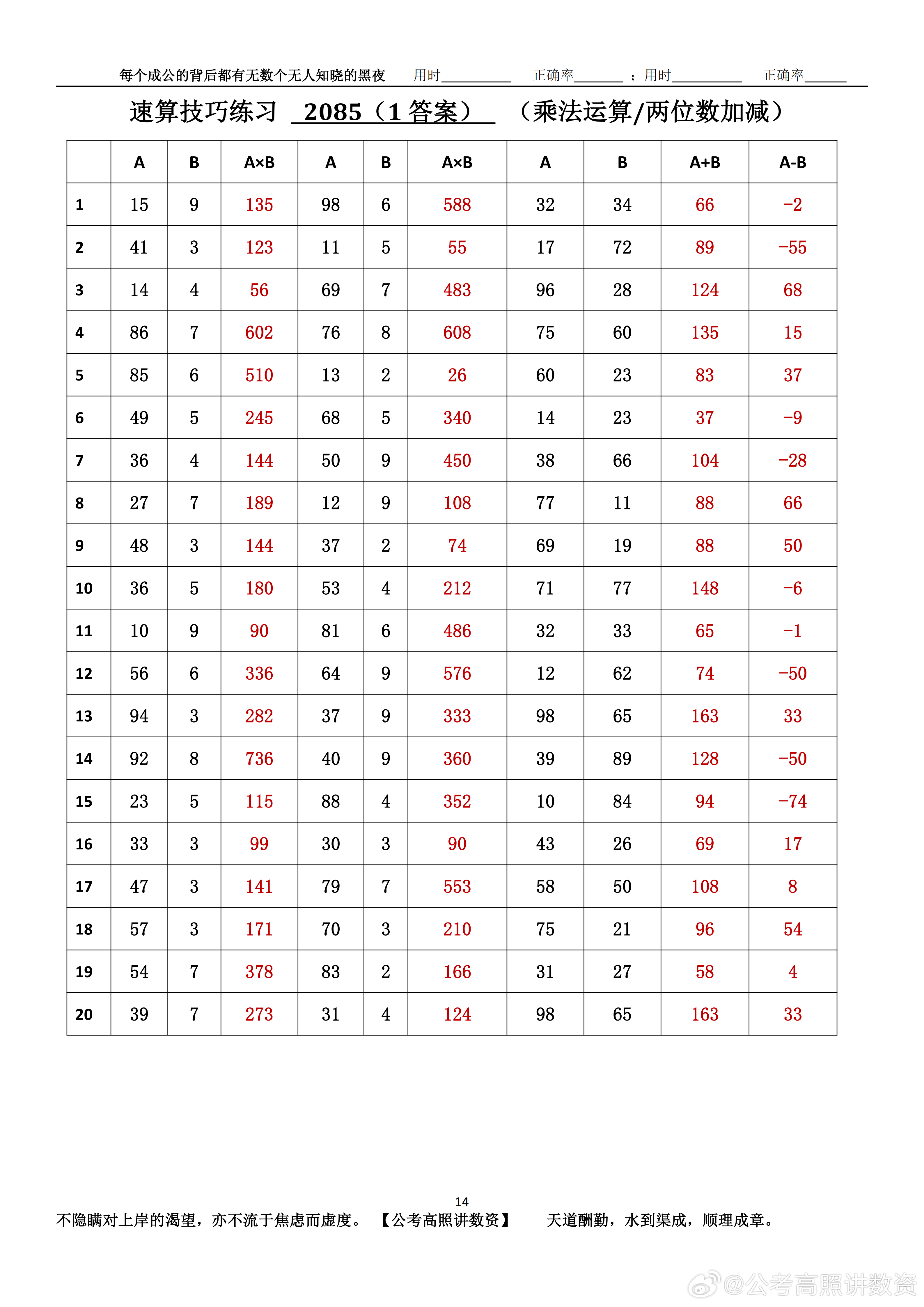 跟着高照练速算决战公考 速算练习2085相信自己,努力学习。速算链接汇总:网页