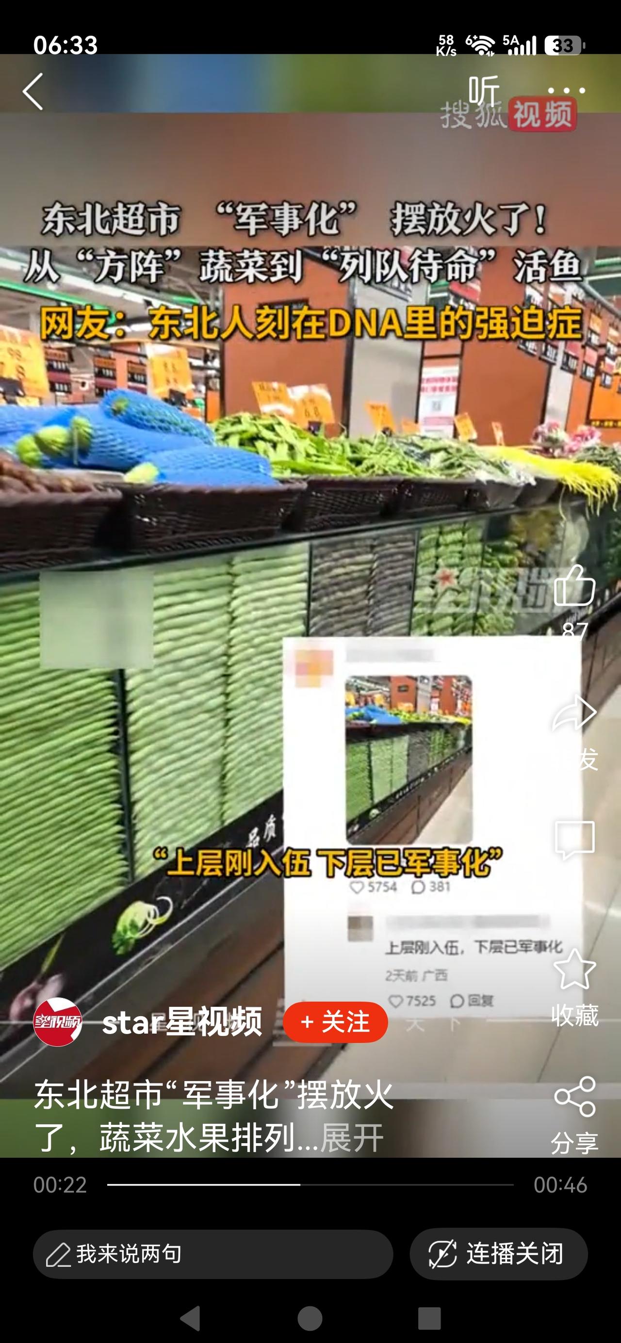 《东北超市“军事化”管理火了!蔬菜方阵、活鱼列队,网友:这哪是买菜,这是阅兵啊》 东北超市“军事化摆放火了,从“方 阵”蔬菜到列队活鱼,整齐划一堪比阅兵,全网刷屏引发南北网友热议。视频里豆角成排、黄瓜对齐、水果摆成几何阵,连水产区的鱼都像在列队待命,强迫症直呼治愈,外地人惊叹大开眼界。这不是刻意摆拍,是东北商超日常陈列标准,靠精细化管理与员工执行力,把烟火气做出仪式感,既降低损耗又提升购物体验,短短几天收获百万点赞。 这哪是摆货,分明是刻在东北人骨子里的规整与较真!看着一排排立正的瓜果蔬菜,瞬间明白什么叫细节里的体面。不糊弄、不杂乱,把平凡日子过得井井有条,这就是最动人的生活态度。 有人说太死板,我却觉得这是用心。整齐的货架,干净的环境,让买菜变成享受,也藏着商家对顾客的尊重。东北人性格直爽敞亮,做事讲究板正,连摆货都透着一股认真劲儿,不敷衍、不将就,小事做到极致,就是大写的靠谱。 当下社会浮躁,大家都在追求快节奏,而这种极致的秩序感,恰恰治愈了无数人的焦虑。它告诉我们,认真对待生活,生活也会回馈温柔。平凡的岗位也能做出仪式感,普通的日子也能过得有滋有味。为这份踏实与用心点赞,这样的超市,谁能不爱?热点话题 超市蔬菜“军事化”摆放