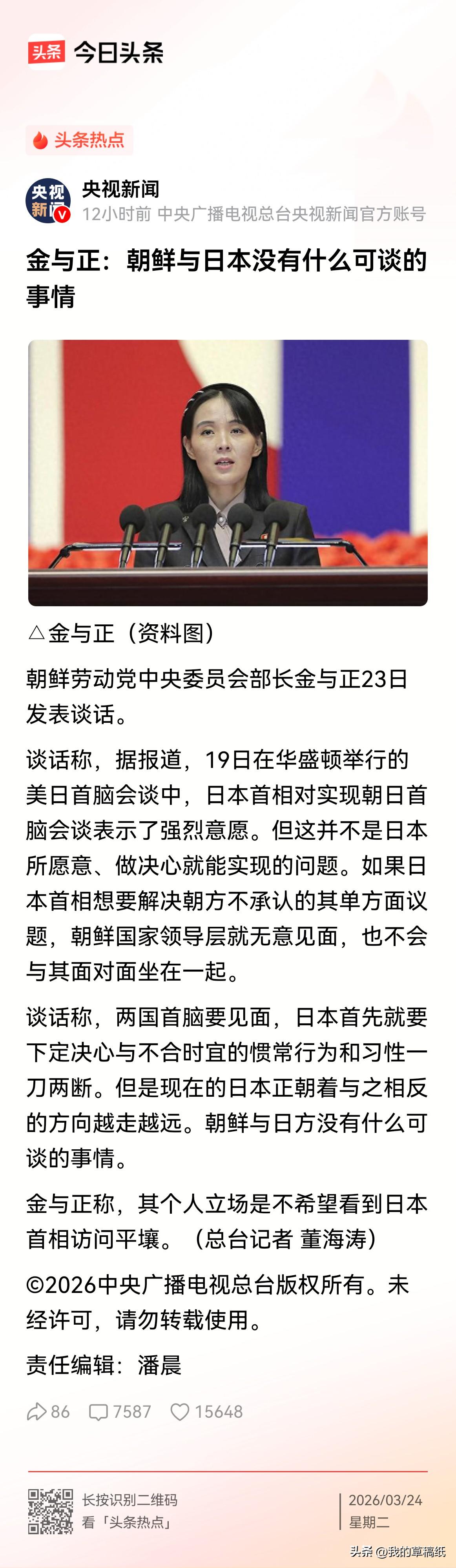朝鲜金与正这句话讲的硬气霸气,她直接撂话:朝鲜和日本,没什么可谈的! 光靠核武器真能保平安吗?看看苏联就知道了。 金与正最新表态,朝鲜跟日本没什么好谈的,直接拒绝一切接触谈判。 不少网友都说,朝鲜这波太清醒了。 一旦跟日本走太近,不仅没好处,反而容易失去大国庇护,对朝鲜来说就是致命风险。 小国在大国博弈里生存,从来不是单靠武器硬撑。 朝鲜能安稳到现在,本质是符合多方利益平衡。 真要是乱站队、乱接触,处境只会更危险。 日本跟着美国步步紧逼,历史账没算清,还总拿单边问题说事,朝鲜自然不愿搭理。 你觉得朝鲜坚持不跟日本谈,是明智还是强硬过头?
