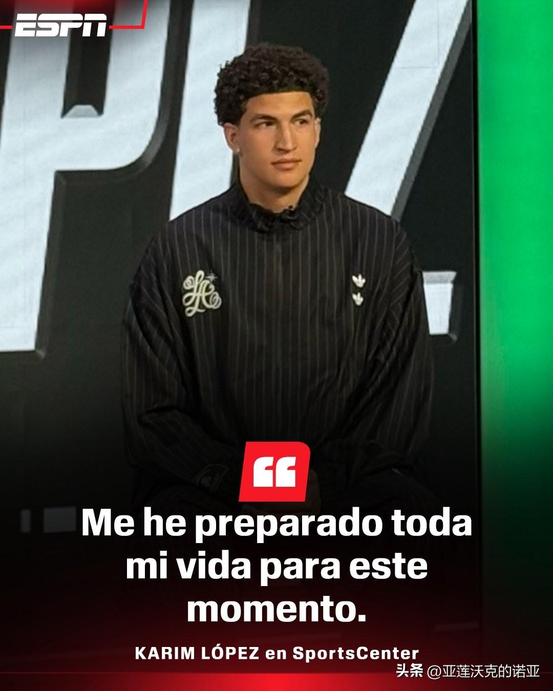 墨西哥前锋Karim Lopez宣布参加2026年nba选秀 身高6-9=206,他有望成为第一个出生在墨西哥被NBA选秀首轮选中的球员,采访中说在NBA打球是我一生的梦想和目标,大概5岁的时候,我曾画出自己在NBA打球的样子。他将于4月12日满19岁,本赛季场均25.6分钟得到11.9分6.1篮板,投篮命中率49%。