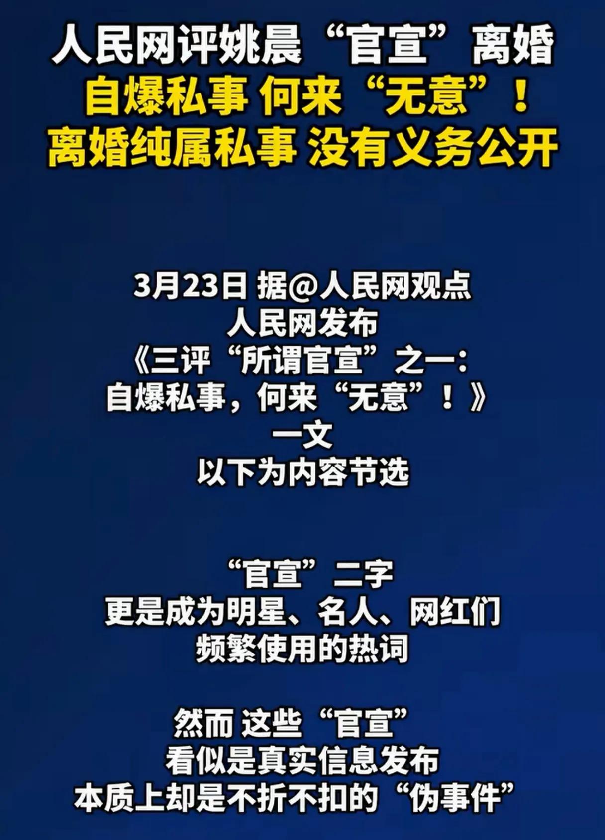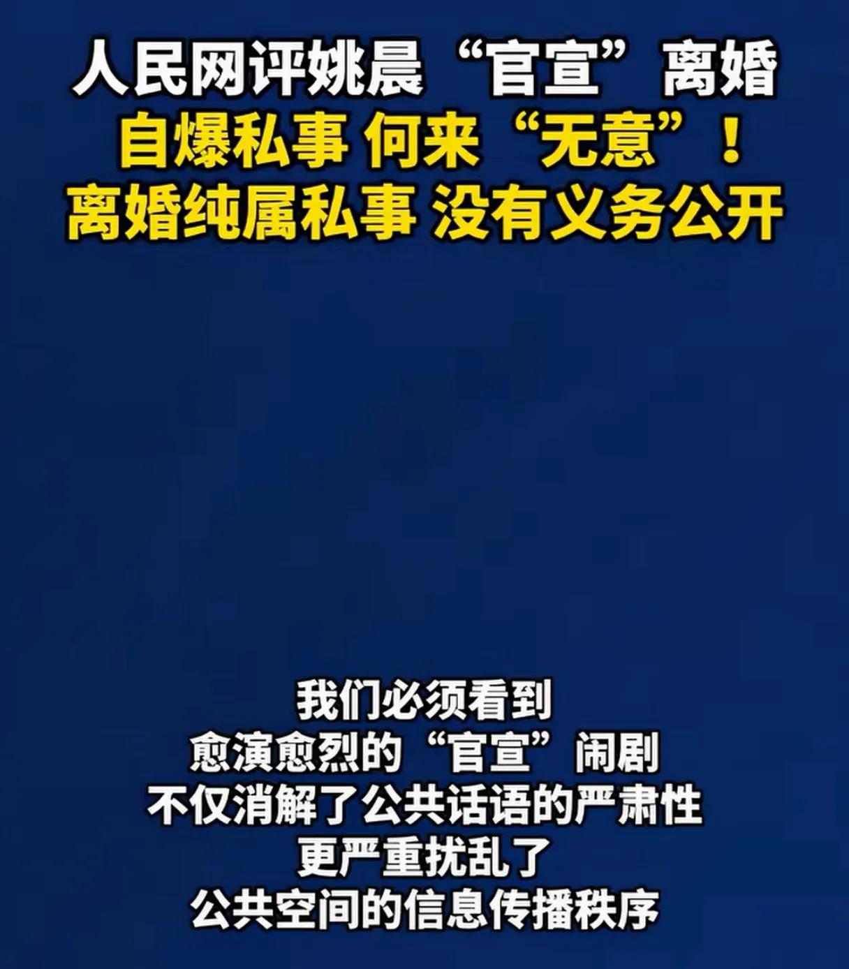 人民网这次直接扒掉了明星“官宣”的底裤。 对于说姚晨离婚这事,人民网点得很透,