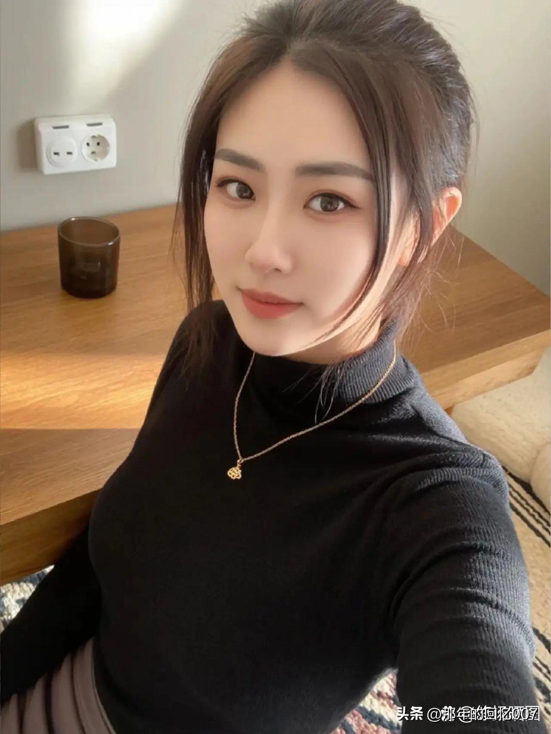 看到这个穿着黑色高领毛衣微笑着看镜头的女孩,瞬间被她的气质吸引。黑色高领毛衣就像一个神秘的小宇宙,把她衬托得既温暖又有韵味。那微笑,如同冬日里的暖阳,驱散了寒冷。