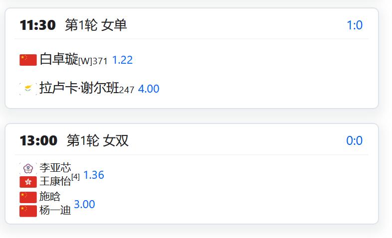 WTA1000赛迈阿密站,女单第四轮,中国金花郑钦文3-6,4-6不敌头号种子萨巴伦卡,无缘女单八强; 女双第二轮,徐一璠/蒋欣圩2-0击败捷克组合,晋级下一轮; 张帅/梅尔滕斯2-0击败持外卡参赛的布雷迪/麦克纳利,同样晋级; 杨钊煊/加藤未唯0-2不敌6号种子穆罕默德/卢特利芙,无缘晋级。 CH50四日市,男单第一轮,周意将对阵英国球员温德尔肯; 从资格赛突围的崔杰将对阵清水悠太; 孙发京将对阵6号种子内田海智。 W50马鞍山,女单第一轮,5号种子郭涵煜将对阵西乡里奈; 持外卡参赛的白卓璇将对阵谢尔班; 女双第一轮,李宗钰/李羽芸将对阵一对俄罗斯组合; 施晗/杨一迪将对阵港台组合李亚芯/王康怡; 叶秋语/张莹将对阵持外卡参赛的魏彰倩/吴汝茜。