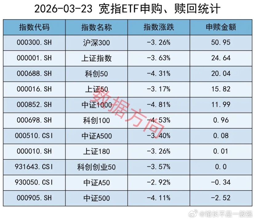 上证指数(24.64亿)、科创50指数(20.04亿),净申购超20亿。