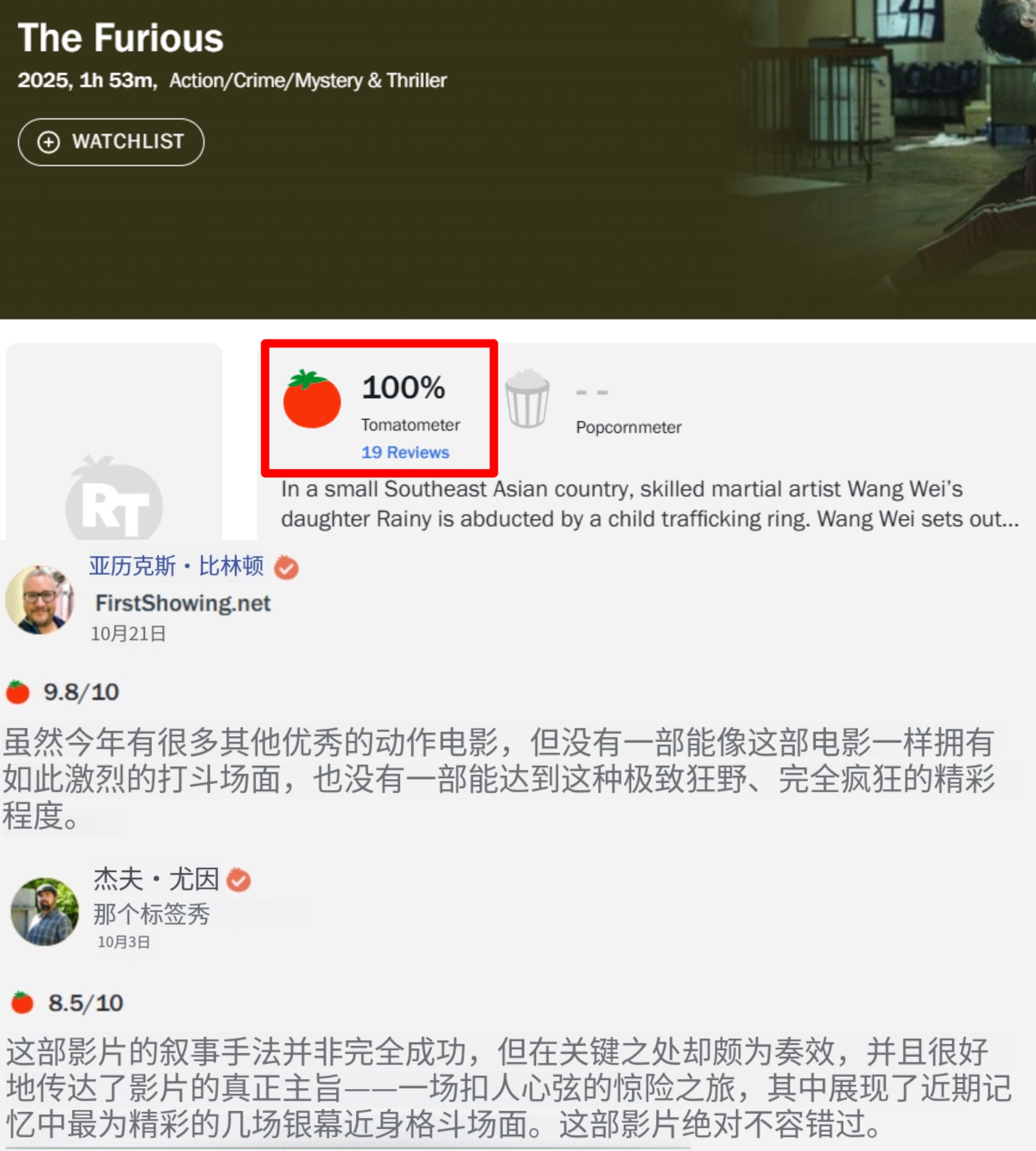 现在太缺这口了,大尺度动作爽片,之前在多伦多电影节口碑大爆,烂番茄100%好评,这数据放在动作片里相当能打。海报里也直接标注了评论内容:「全球近十年最佳动作电影之一」,怪不得狮门抢着买断发行。除了核心谢苗外,其他几位动作演员也有展示,《突袭》里的“疯狗”雅彦和队长林科灯、《瞬息全宇宙》里跟杨紫琼对打的黎唯,非动作迷可能不熟,但属于动作迷疯狂上头的阵容。
