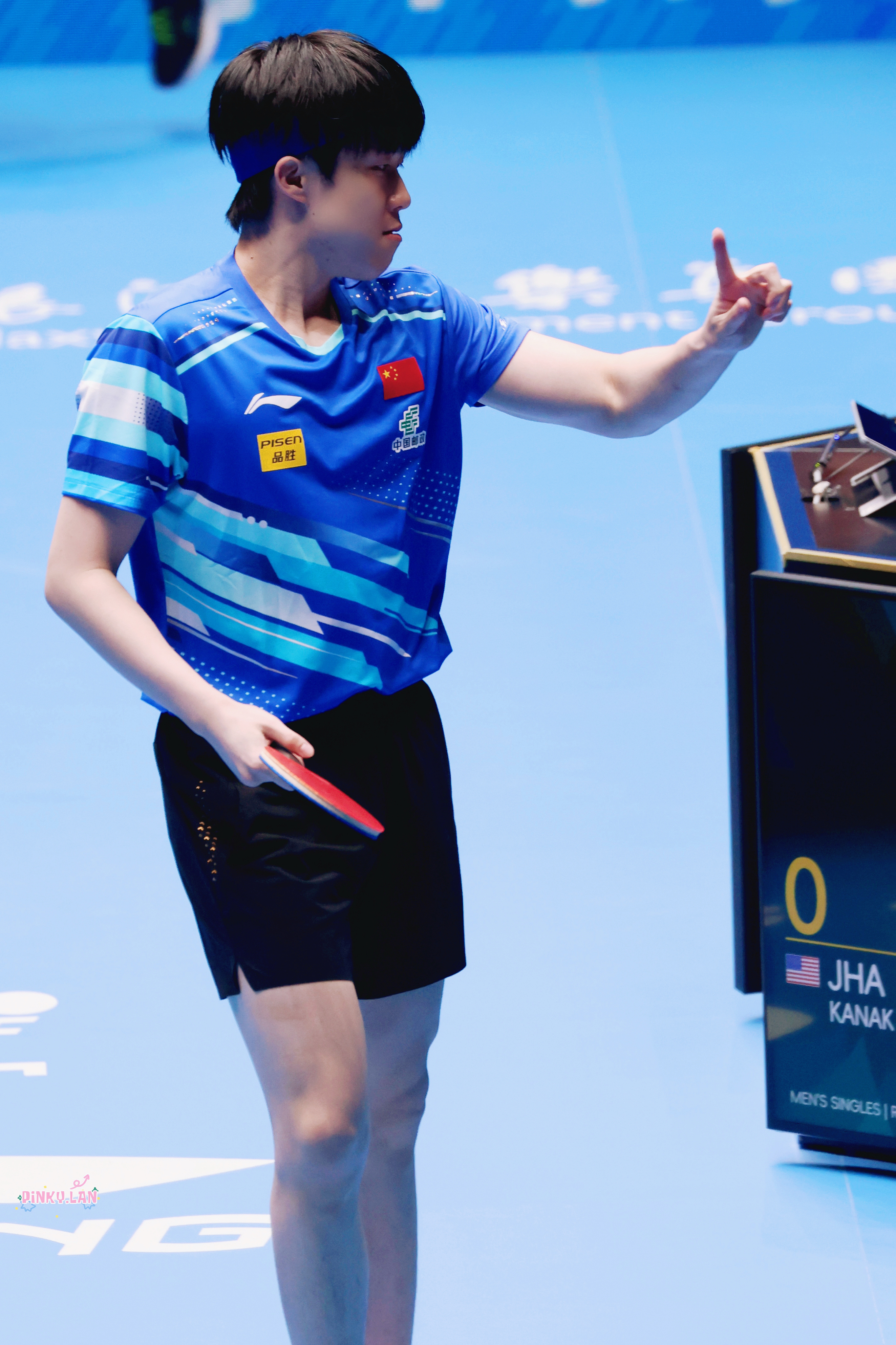 王楚钦夺冠那一刻,太激动了,双手摊开,双腿八字叉,大字型躺在地上,肚皮一鼓一鼓地